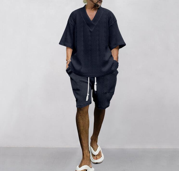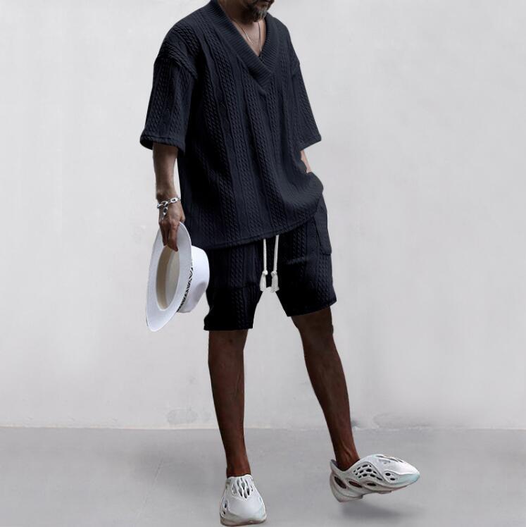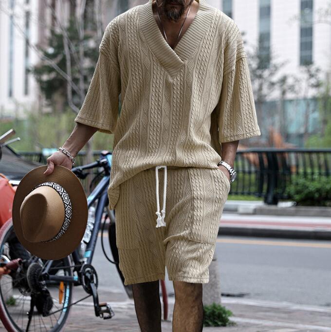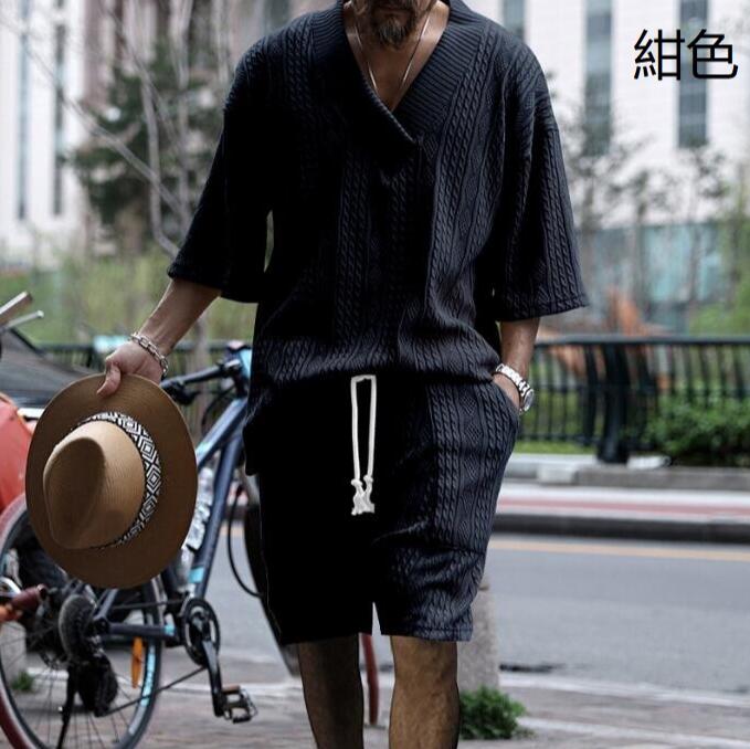 ニットセット メンズ 半袖トップス シ スポーツウェア アクセサリー ジャージ メンズジャージ セットアップ 特集 黒色 白色 カーキ グレー 紺色 スカイブルー S M L XL 2XL 3XL