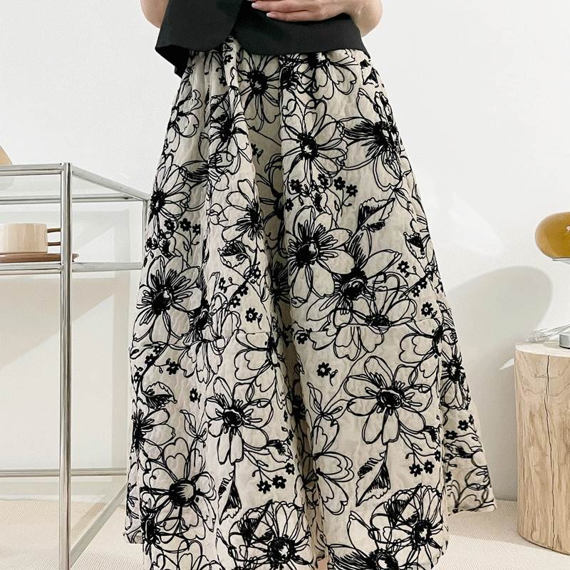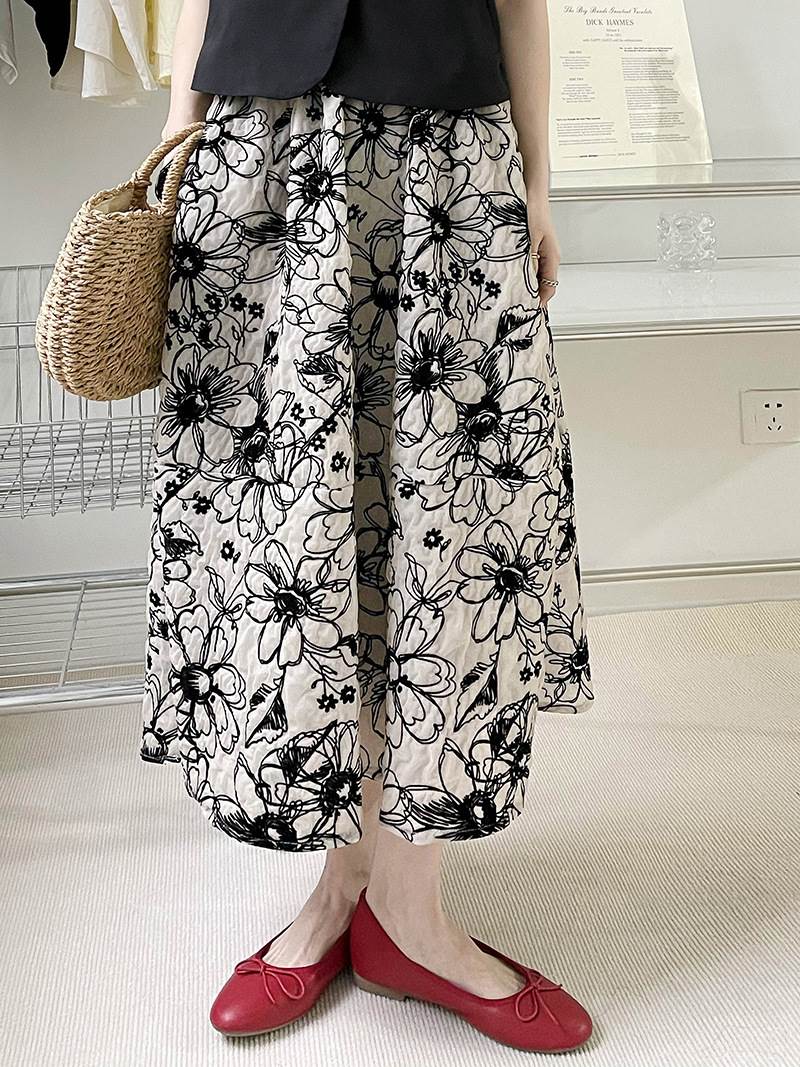 ボトムス スカート ロングスカート レディース フレアスカート Aライン 花柄 ウエストゴム かわいい 大人可愛い きれいめ シンプル 上品 おしゃれ かっこいい 個性的 レトロ きちんと こなれ感