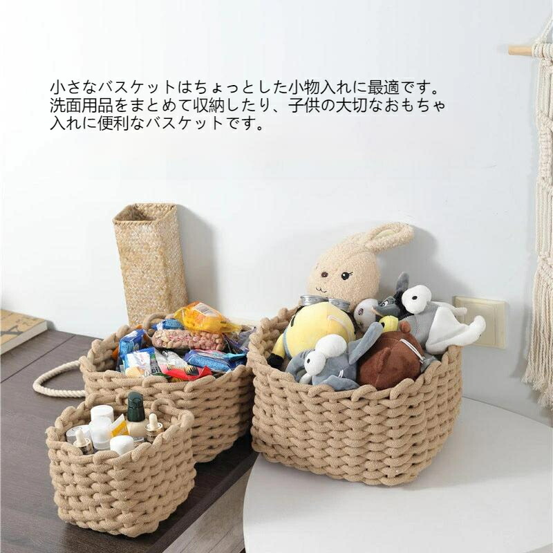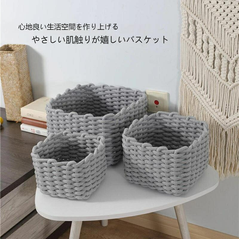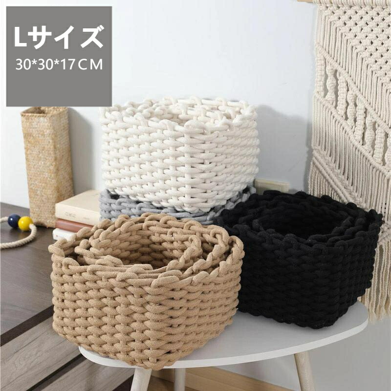 収納 バスケット L コットン 籠 カ グレー ワイト ブラウン