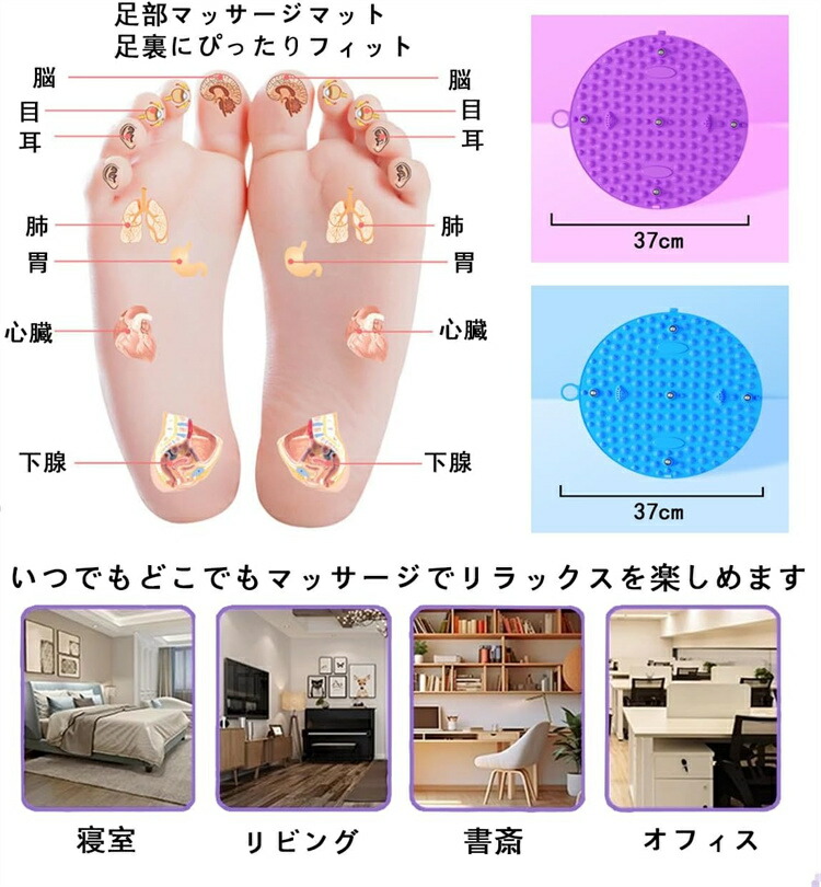 足ツボマット 足つぼ マット 磁石付き 直径37CM 直径41CM 直径43CM 直径55CM 直径58CM 直径61CM パープル ブルー