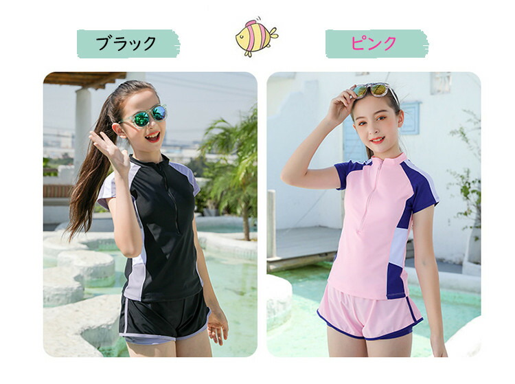 2点セット キッズ水着 水着 女の子 キッズ ベビー マタニティ 新登場! ピンク ブラック 140cm 150cm 160cm 165cm/L 170cm/LL