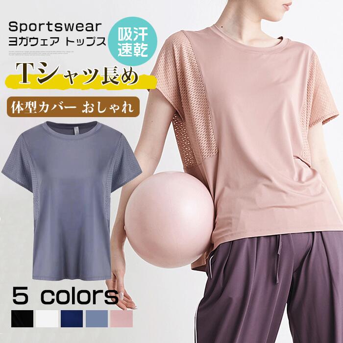 ヨガウェア トップス Tシャツ かわい ヨガ ピラティス ウェア トップス 豊富 ブラック ホワイト ネイビー ブルーグレー ピンク S M L XL