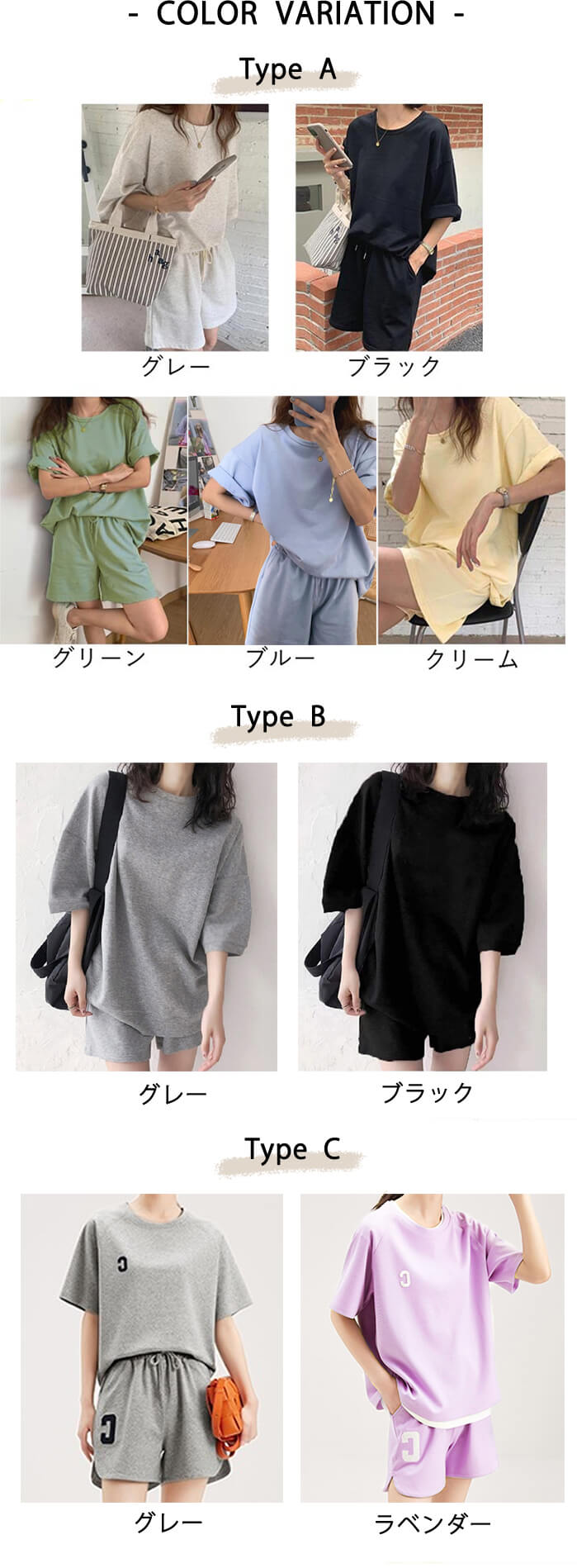 2B35 セットアップ ルームウェア レディースファッション 通販 M L XL XXL Type A(グレー) Type A(ブラック) Type A(グリーン) Type A(ブルー) Type A(クリーム) Type B(グレー) TypeB(ブラック) Type C(グレー) Type C(ラベンダー) Type D(ベージュ) Type D(ブルーパープル) Type D(ブラック) Type E(ホワイト) Type E(グレー) Type E(セルリアンブルー) Type E(ネイビー) Type F(グレー) Type F(ブルー) Type F(ピンク) Type G(ブラック) Type G(イエロー) Type G(ブルー) Type G(ピンク)
