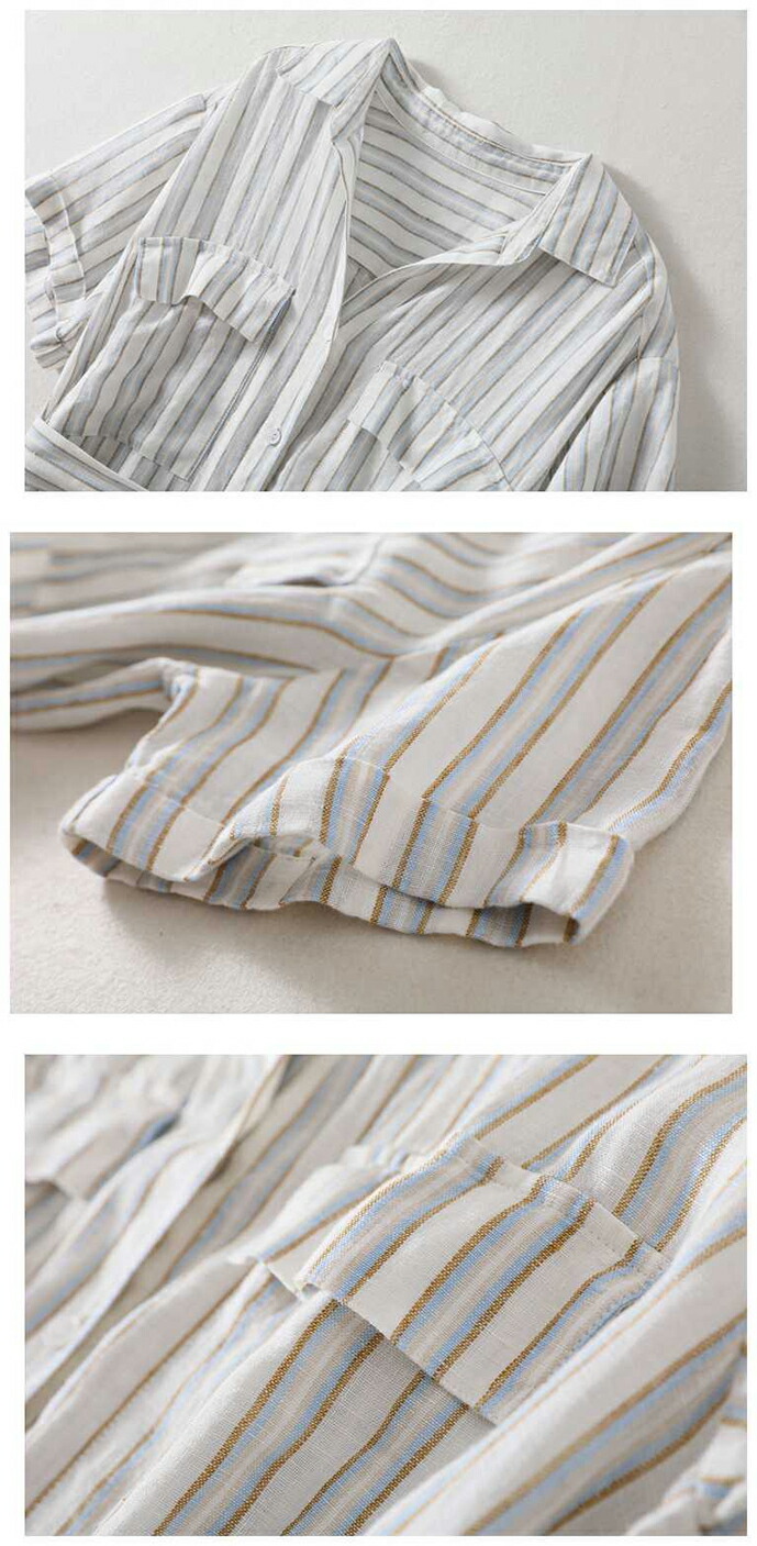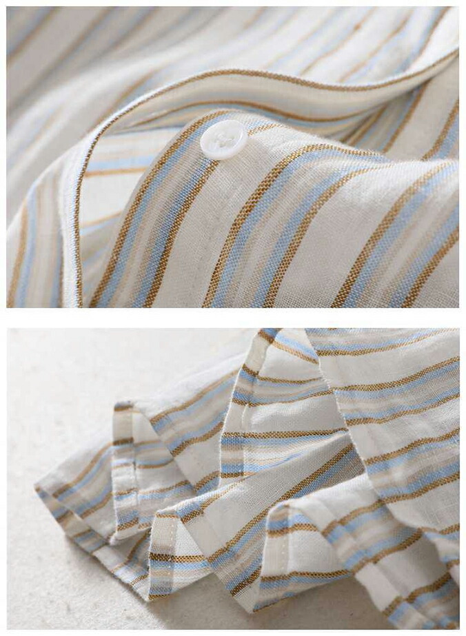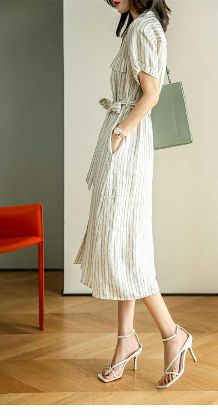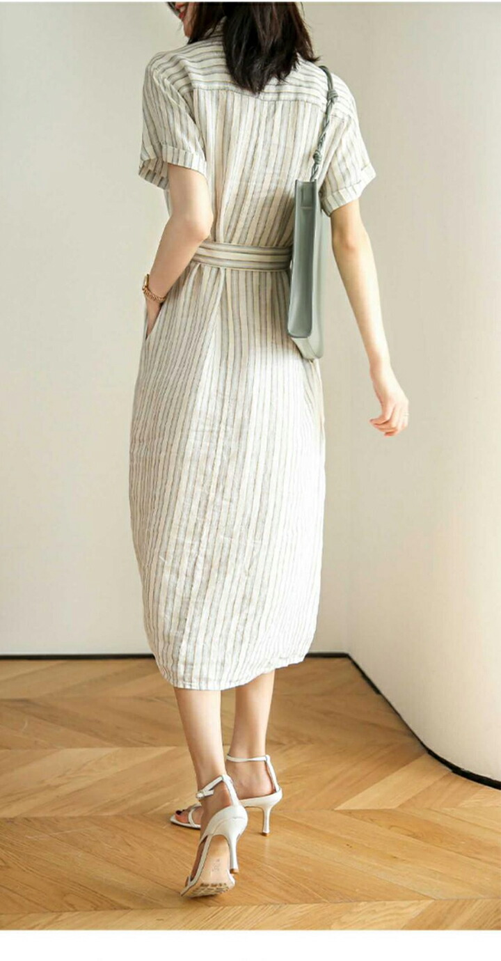 綿麻 半袖 ストライプ柄ワンピース 綿 ワンピース 続々登場 M L XL