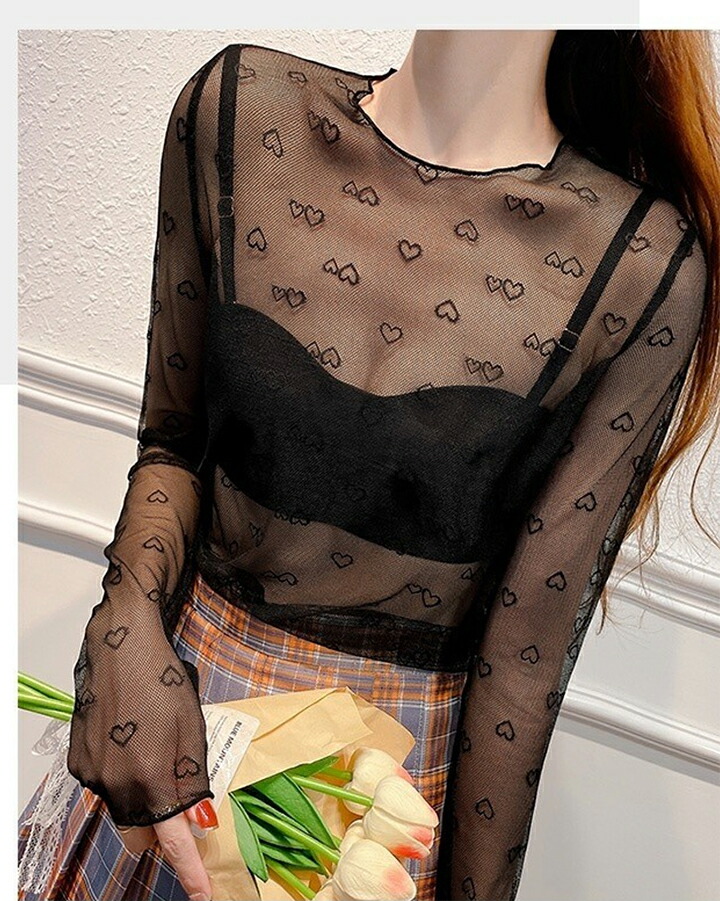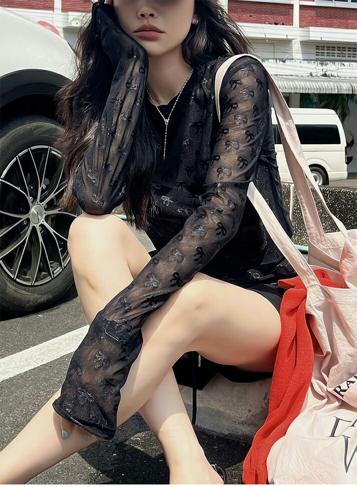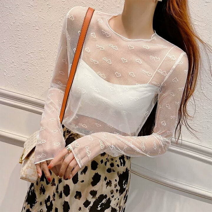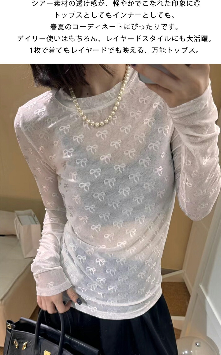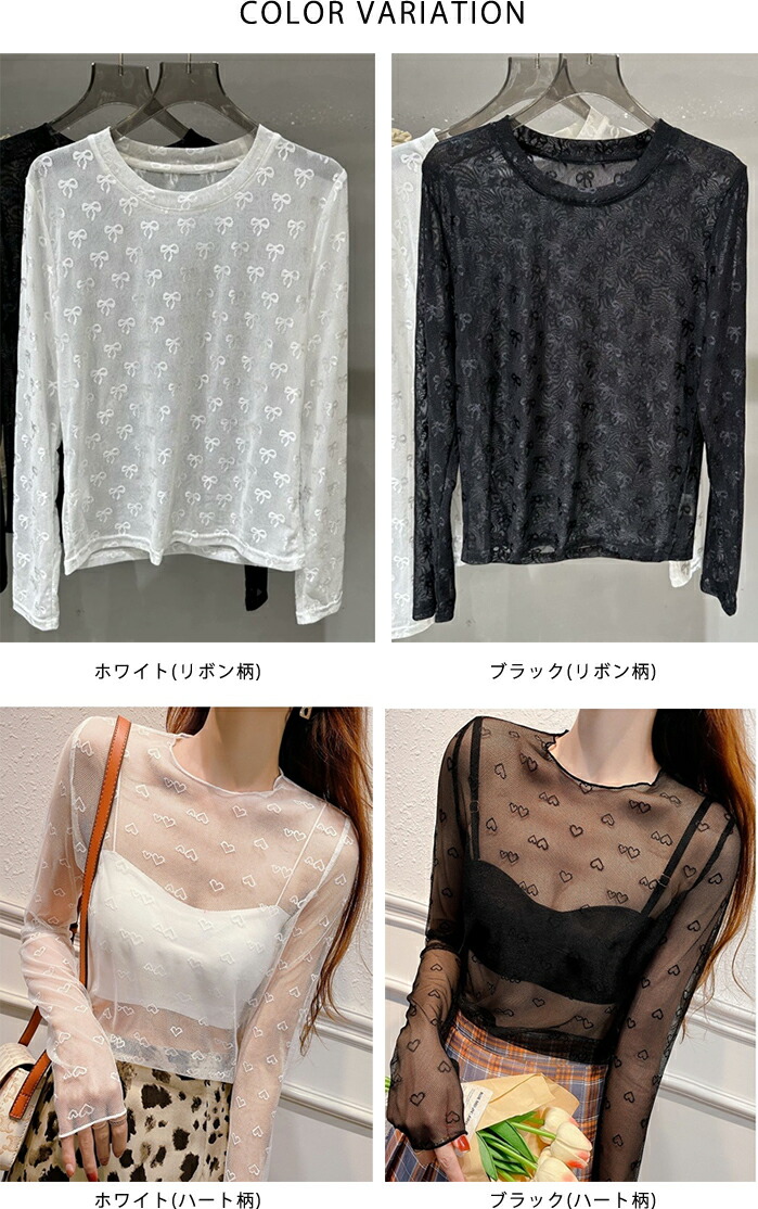リボン柄 ハートシアートップス カット トップス Tシャツ カットソー 通販 S M L XL ホワイト(リボン柄) ブラック(リボン柄) ホワイト(ハート柄) ブラック(ハート柄)