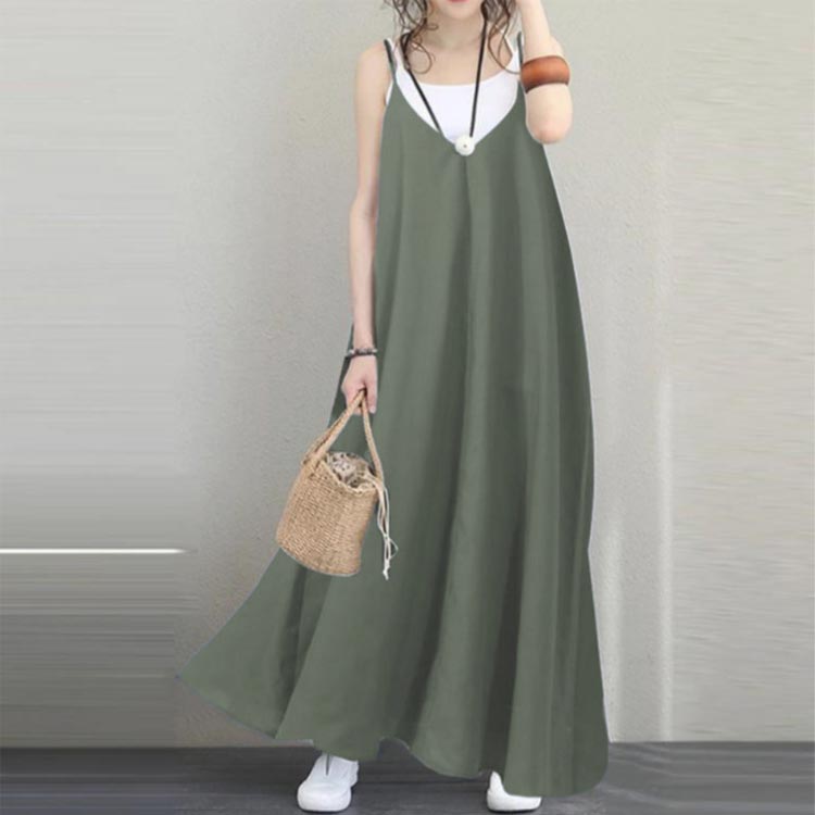 キャミ ワンピース ロング Vネック レディースファッション 超目玉商品 ベージュ グリーン ブルー ブラック S M L XL 2XL 3XL 4XL 5XL