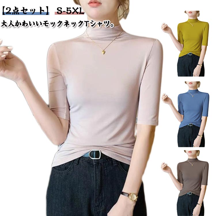 半袖Tシャツ レディース モックネック レディースファッション 通販 カラー1 カラー2 カラー3 カラー4 カラー5 カラー6 カラー7 カラー8 カラー9 S M L XL 2XL 3XL 4XL 5XL