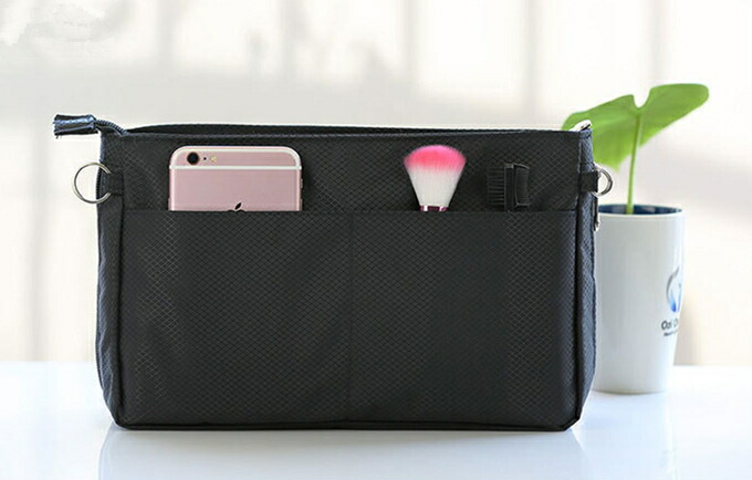 バッグインバッグ ユニセックス 男女兼用 大きめ M L XL 3サイズ ナイロン 丈夫 ポーチ 軽量バックしっかり 自立 軽量 軽い マチ調整可 マチ広め ファスナー フック d 6ポケット