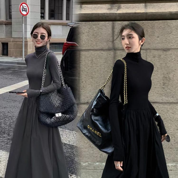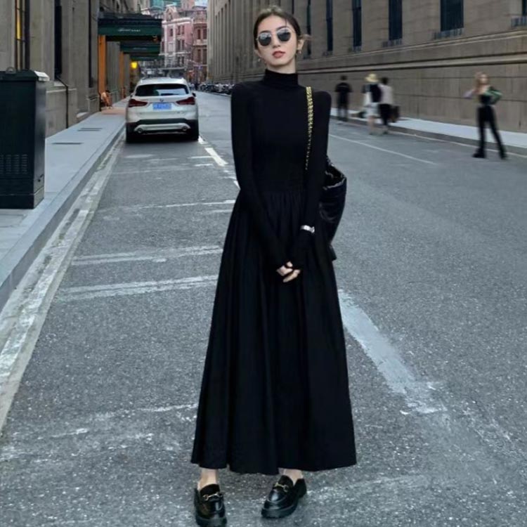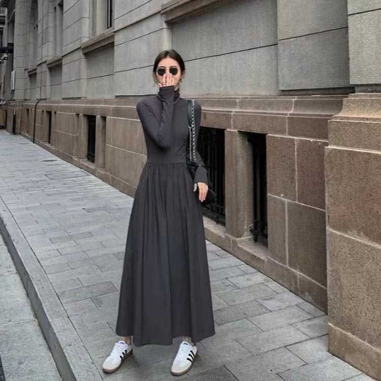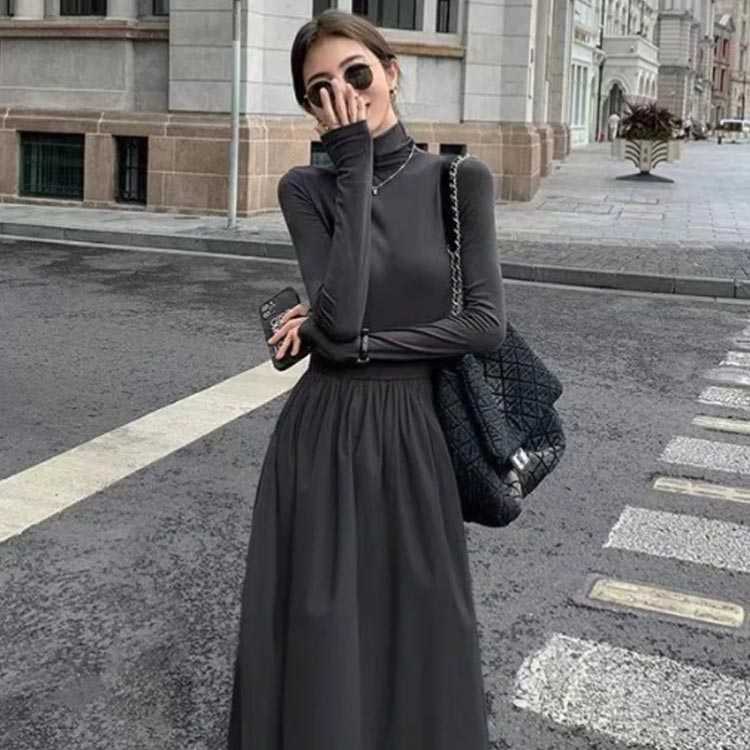ワンピース Aライン 長袖 春 レディ ワンピース 続々登場 ブラック ダークグレー S M L XL 2XL