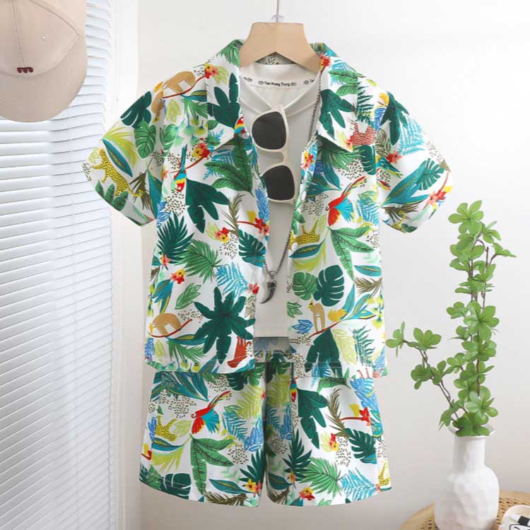 アロハセットアップ ショートパンツ ア キッズ ベビー マタニティ 早い者勝ち グリーン/上下セット イエロー/上下セット 90 100 110 120 130