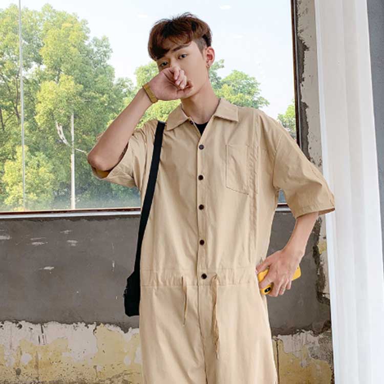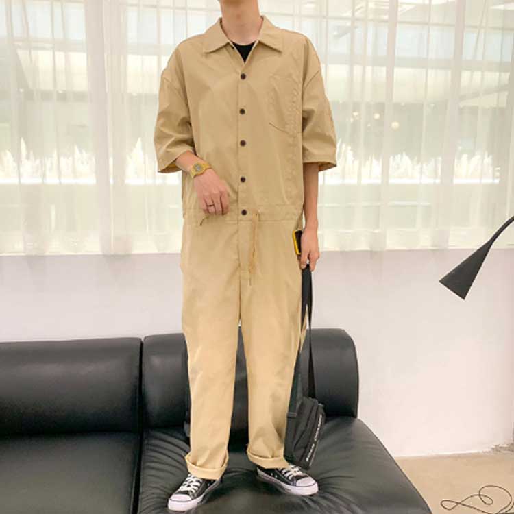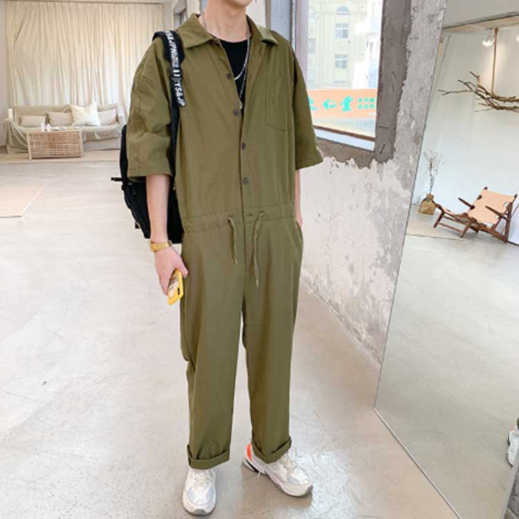 つなぎ オーバーオール メンズ 5分袖 オーバーオール 続々登場 ブラック アーミーグリーン ベージュ M L XL 2XL