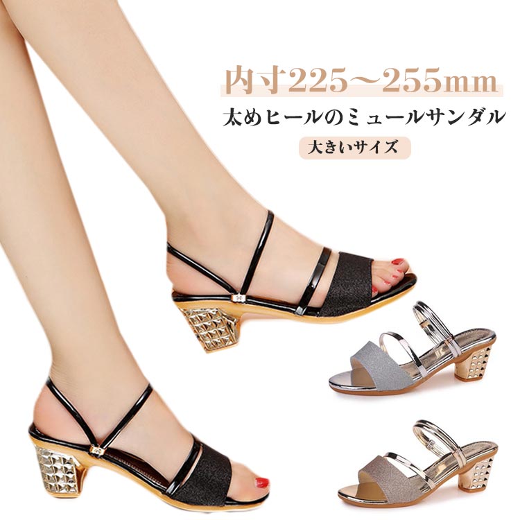 サンダル ミュールサンダル キラキラ レディース靴 ミュール 通販 ブラック シルバー ゴールド 35(内寸225mm) 36(内寸230mm) 37(内寸235mm) 38(内寸240mm) 39(内寸245mm) 40(内寸250mm) 41(内寸255mm)