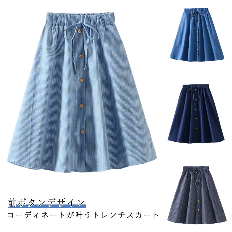 スカート 膝丈 フレアスカート レディ レディースファッション 特集 ストライプ柄/ダークブルー ストライプ柄/ライトブルー 無地/ダークブルー 無地/ライトブルー