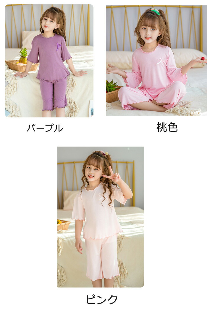 人気 女の子 子供服 ルームウェア 2 キッズ ベビー マタニティ 続々入荷中 100cm 110cm 120cm 130cm 140cm 150cm 160cm 桃色・半袖 パープル・半袖 桃色・長袖 パープル・長袖