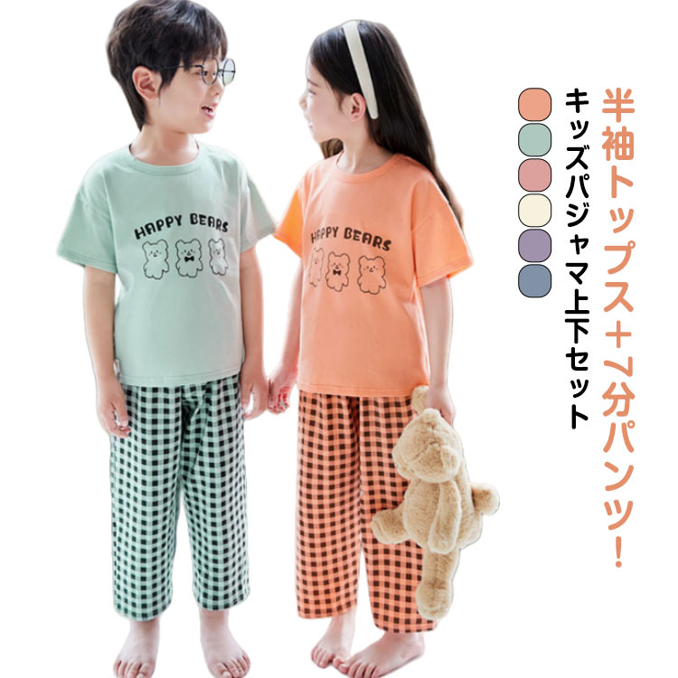 ルームウエア キッズ パジャマ 半袖 キッズ ベビー マタニティ 新作 ブルー/上下セット パープル/上下セット ホワイト/上下セット グリーン/上下セット オレンジ/上下セット ピンク/上下セット 100 110 120 130 140 150 160