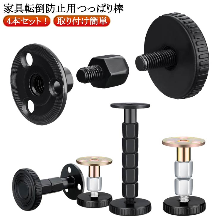 突っ張り棒 強力粘着 長さ調節 4本セット タンス 家具転倒防止 転倒防止 家具固定用 テーブル 保護パッド ベード 食器棚 短い 本棚 地震対策 狭い隙間用 両面シール 冷蔵庫
