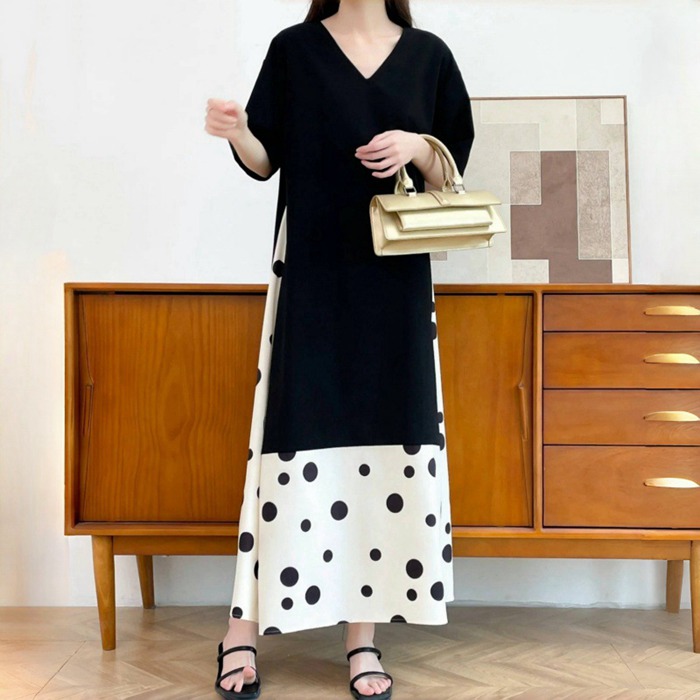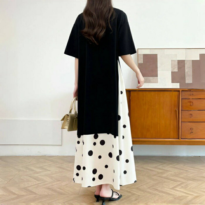 ワンピース ロング ワンピ マキシ 春 レディースファッション 続々登場 ブラック ホワイト M L