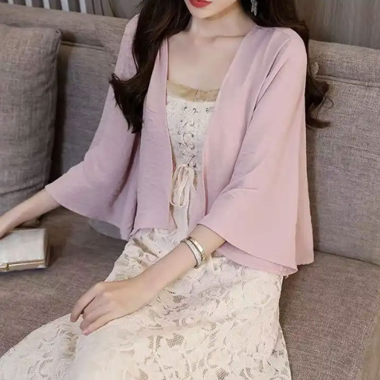 羽織り カーデ 透け感 半袖 レディー トップス カーディガン ボレロ 続々入荷中 ホワイト ブルー ブラック ピンク M L XL