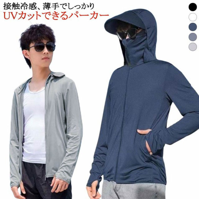 UVパーカー 接触冷感 UVカット 長 メンズファッション 新登場! ダークグレー ライトグレー ネイビー ブラック ホワイト S M L XL 2XL 3XL 4XL