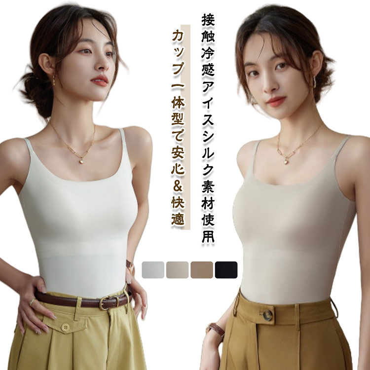 キャミソール ノンワイヤー ブラ付きイ レディース インナー 下着 インナーキャミソール 豊富な品揃え ホワイト カーキ コーヒー ブラック M L XL