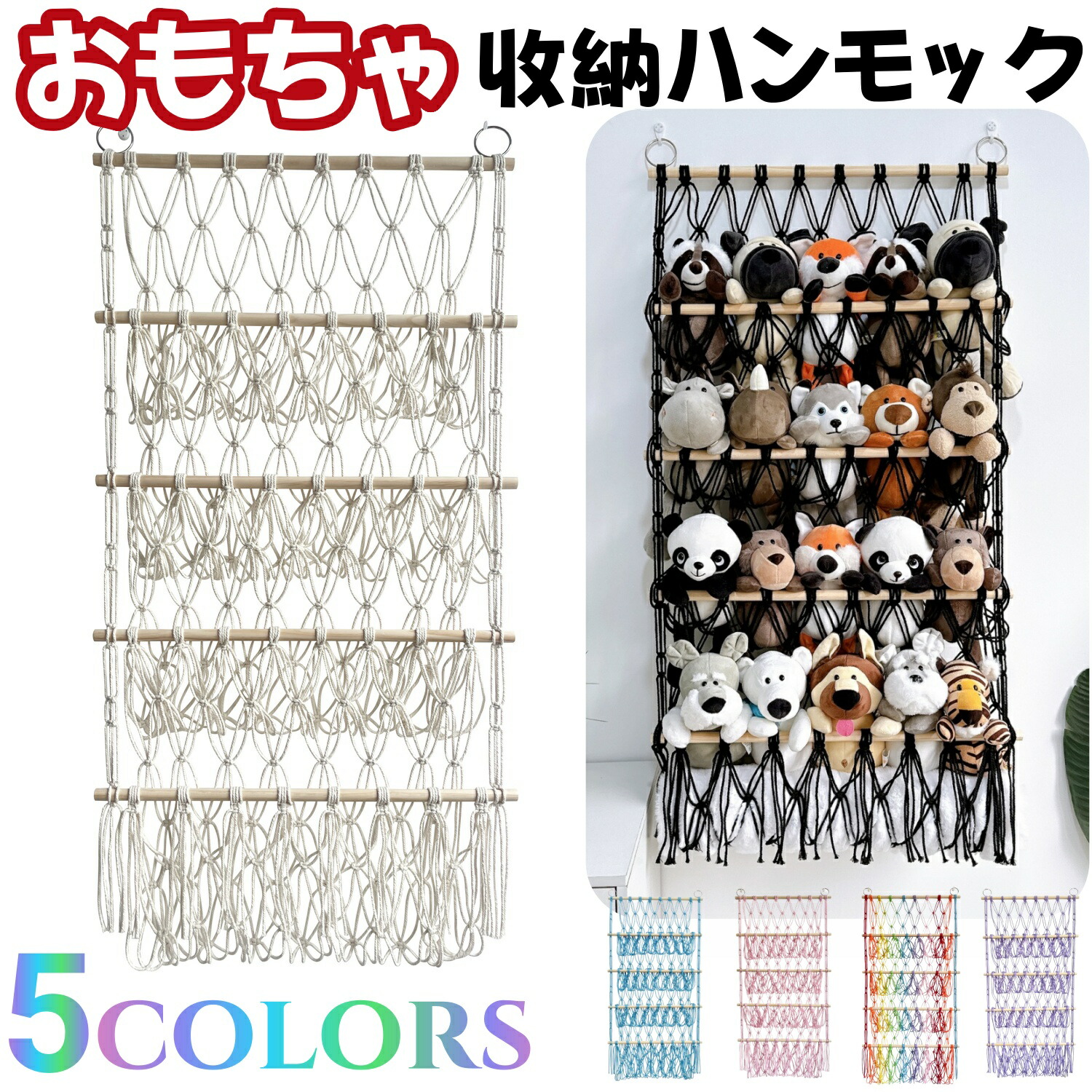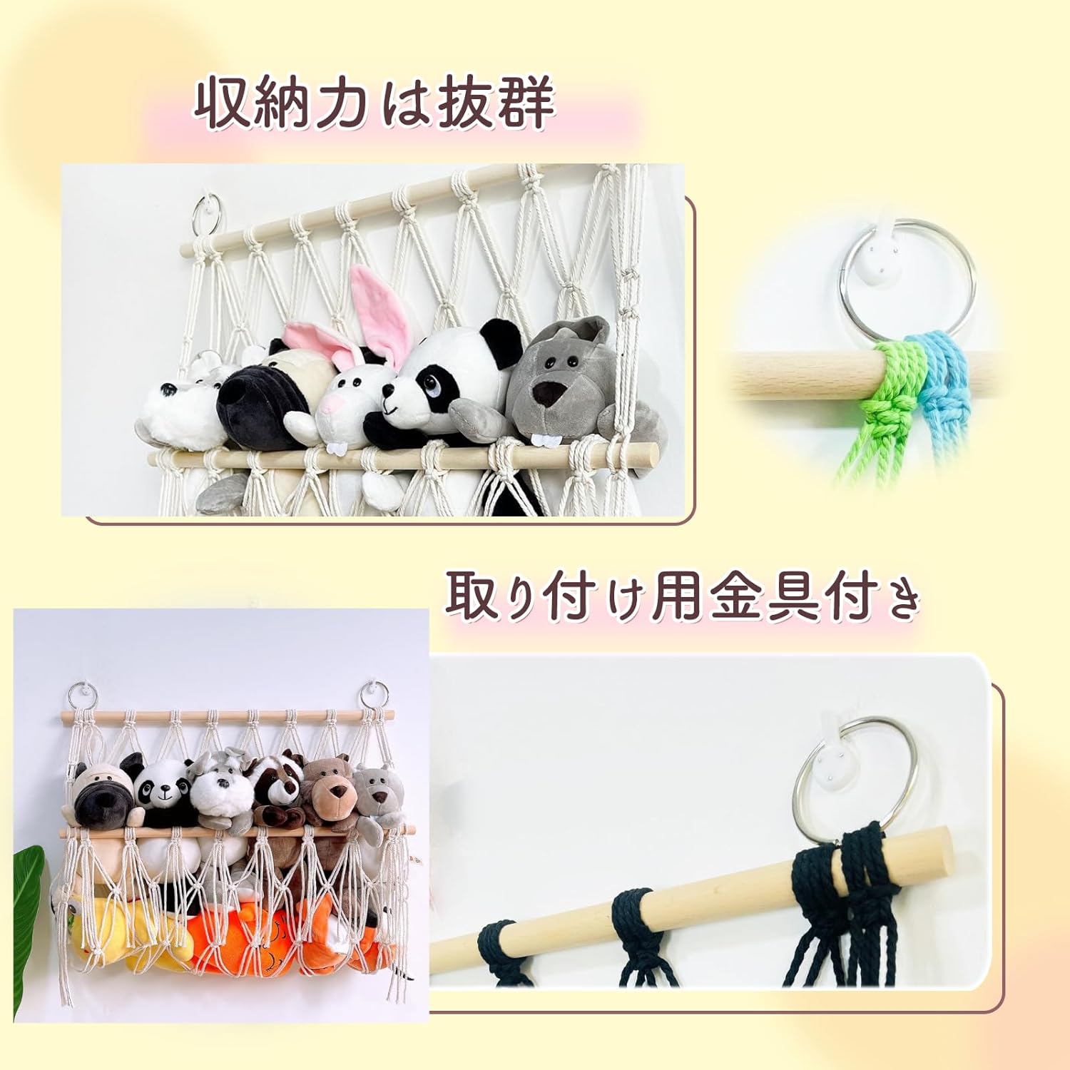 【安全性】安心してお使いいただける耐久性!丈夫なネットと強固な取り付けフックで、たくさんのぬいぐるみをしっかりと支えます。お子様が安全に使えるように設計されており、親御さんも安心です。