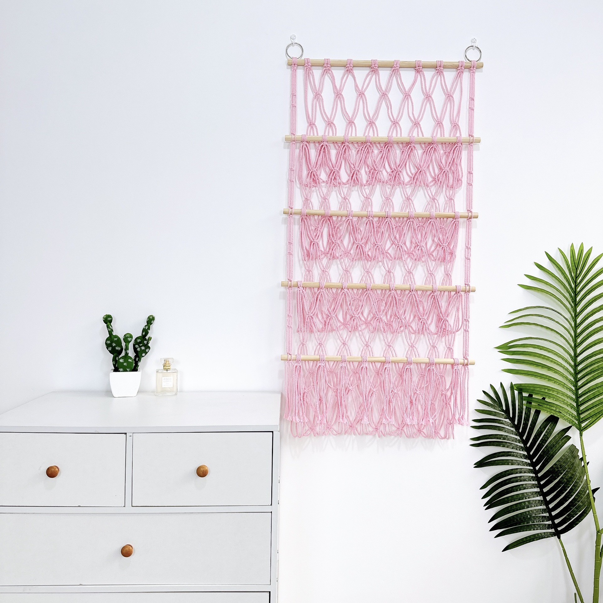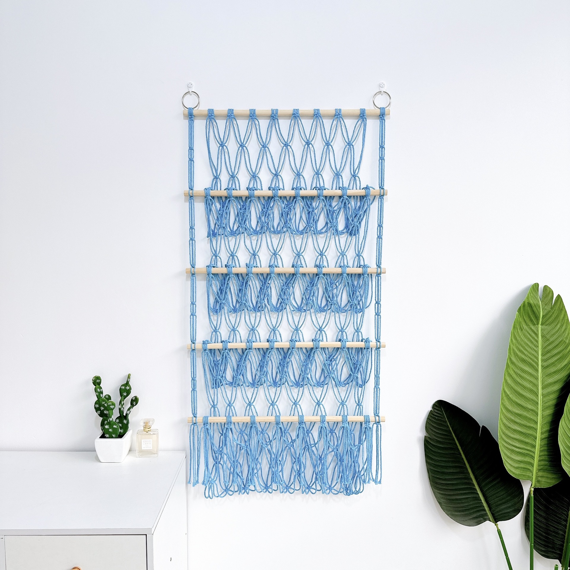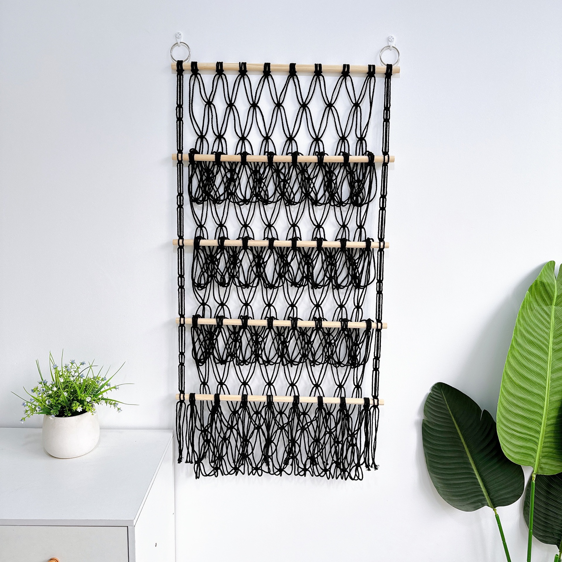 【デザイン】おしゃれなインテリアとしても一役買う!シンプルでモダンなデザインの収納ネットは、お部屋の雰囲気を損なわず、むしろおしゃれなアクセントに。お部屋を整えつつ、インテリアとしても楽しめます。
