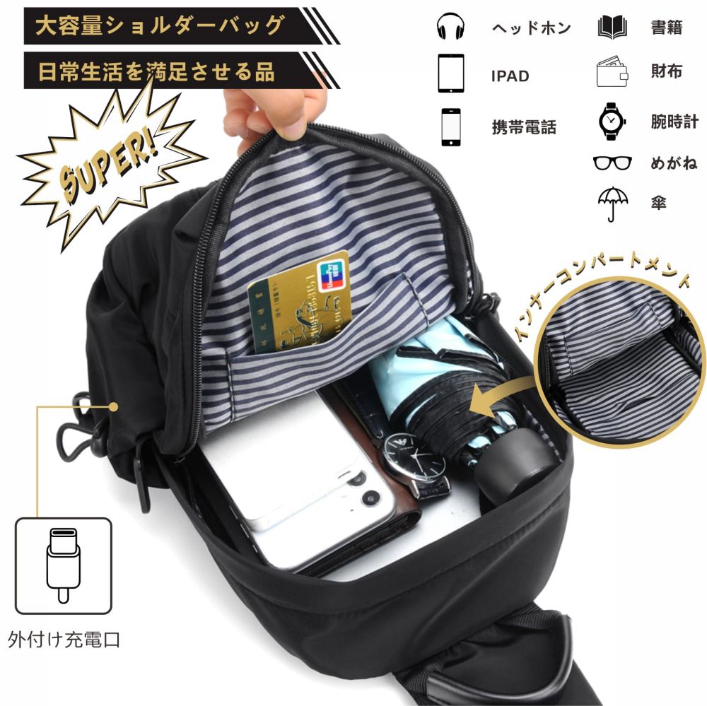 斜め掛け ボディバッグメンズ ショルダーバッグ ワンショルダーバッグ 斜めがけバッグ大容量 防水 ウォーキング メンズバック バックパック 多機能 リュック 通勤 旅行 カバン iPad収納可能 通学