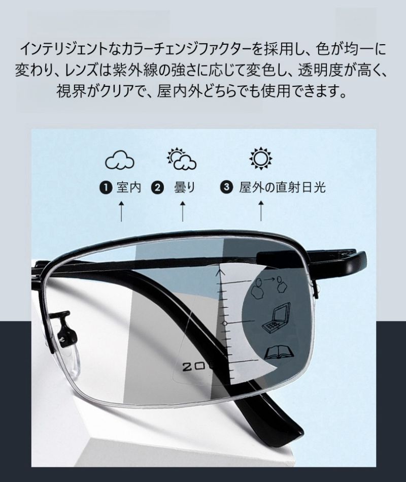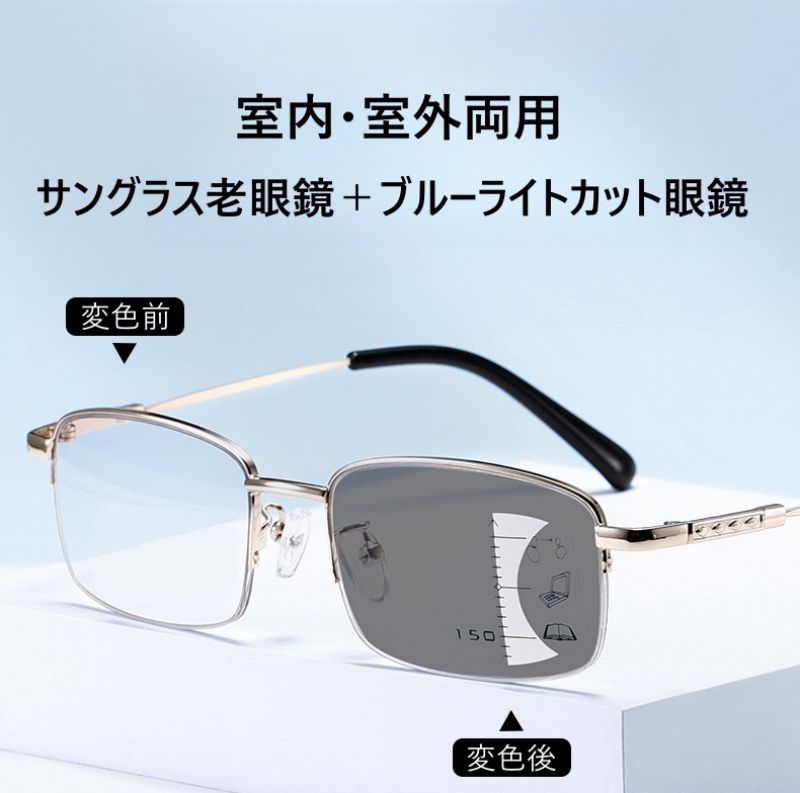 老眼鏡 おしゃれ 調光 サングラス レ バッグ 小物 ブランド雑貨 通販 ブラック ゴールド +1.00 +1.50 +2.00 +2.50 +3.00 +3.50 +4.00