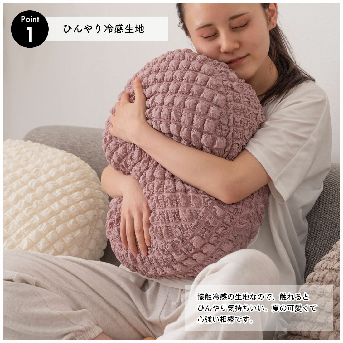 クッション ラウンドクッション 冷感 グレー アイボリー ピンク