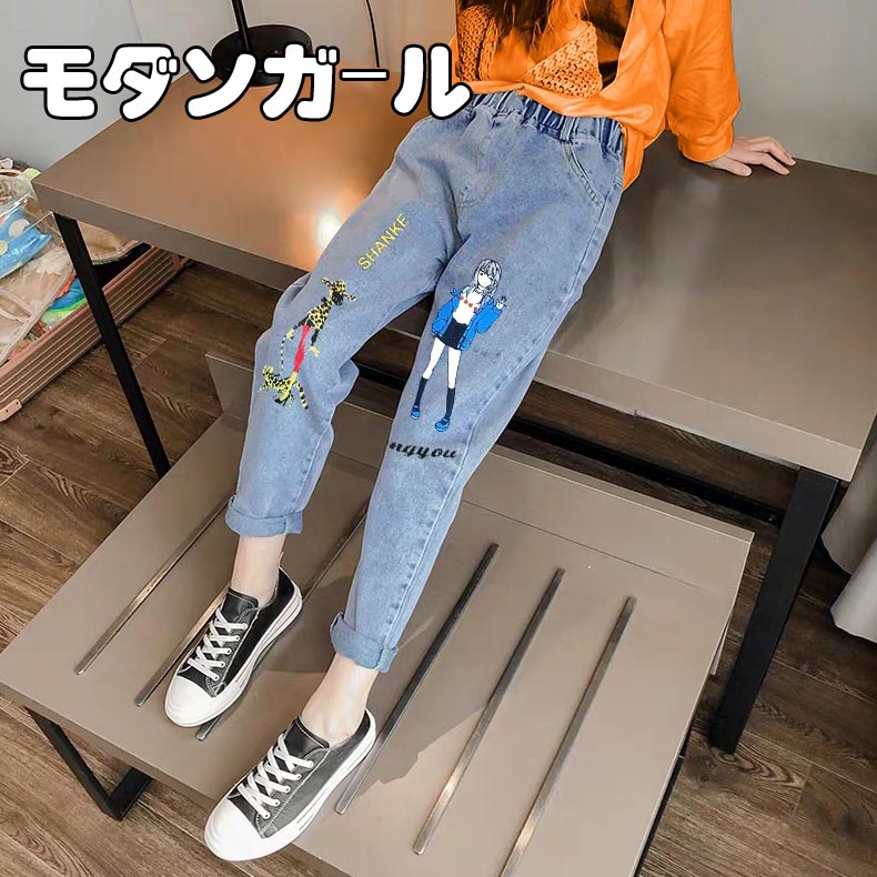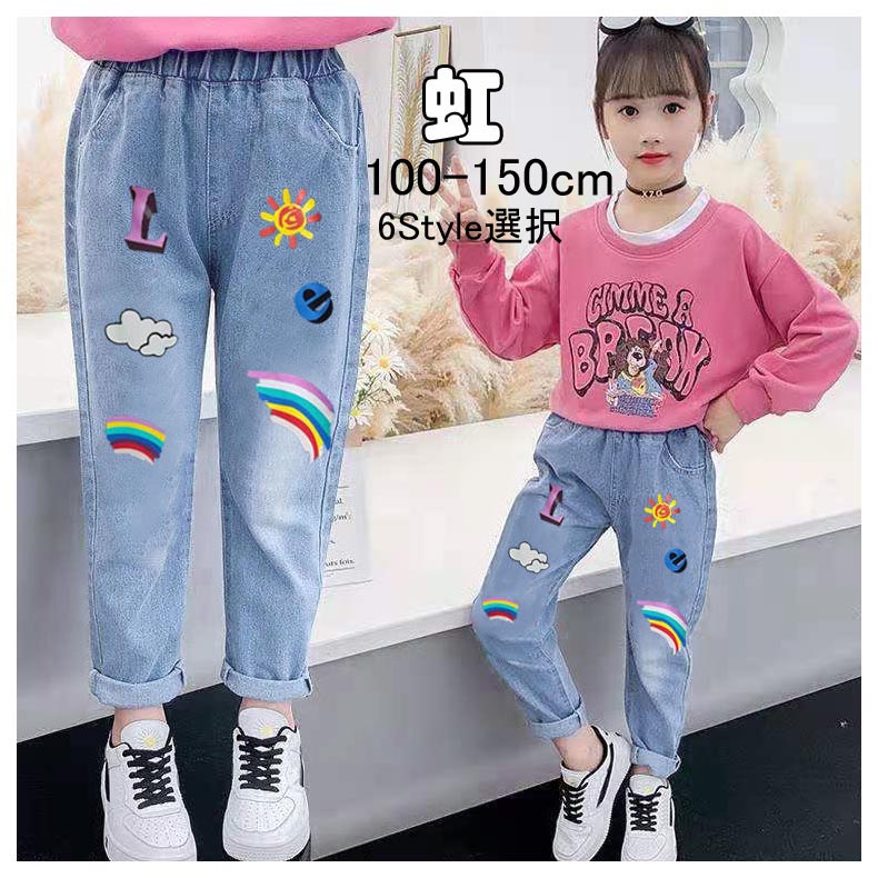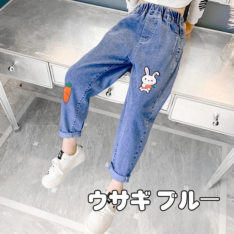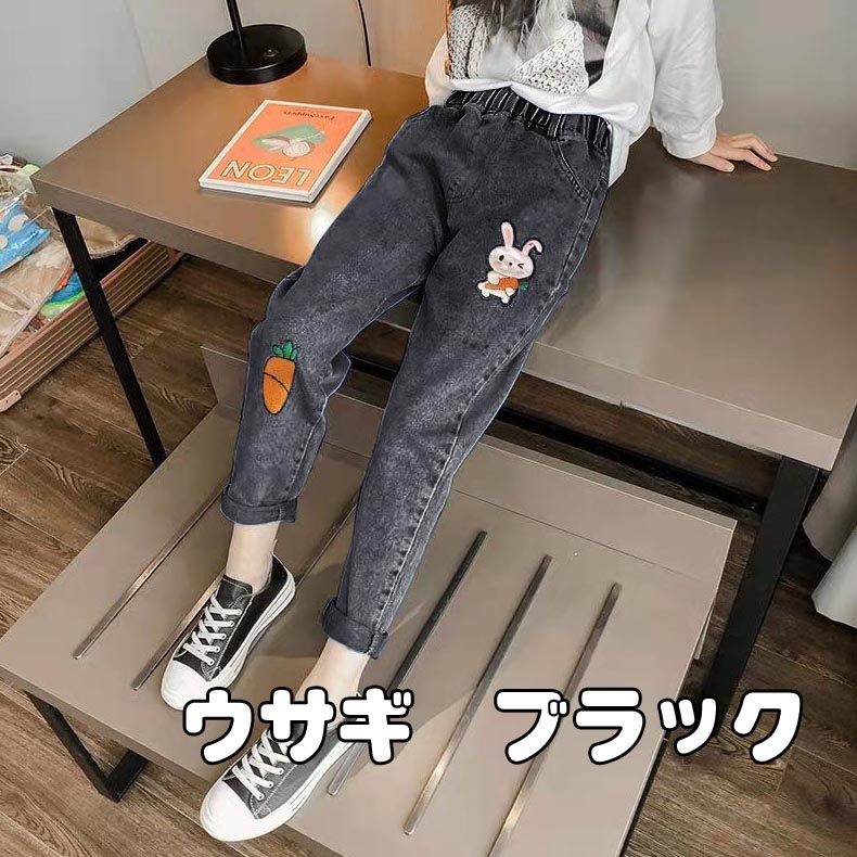 ズボン テーパードパンツ キャラクター キッズ ボトムス パンツ 新作 虹 モデルガール クマちゃん ウサギ ブルー ウサギ ブラック ハート刺繍 110(日本100cm相当) 120(日本110cm相当) 130(日本120cm相当) 140(日本130cm相当) 150(日本140cm相当) 160(日本150cm相当)