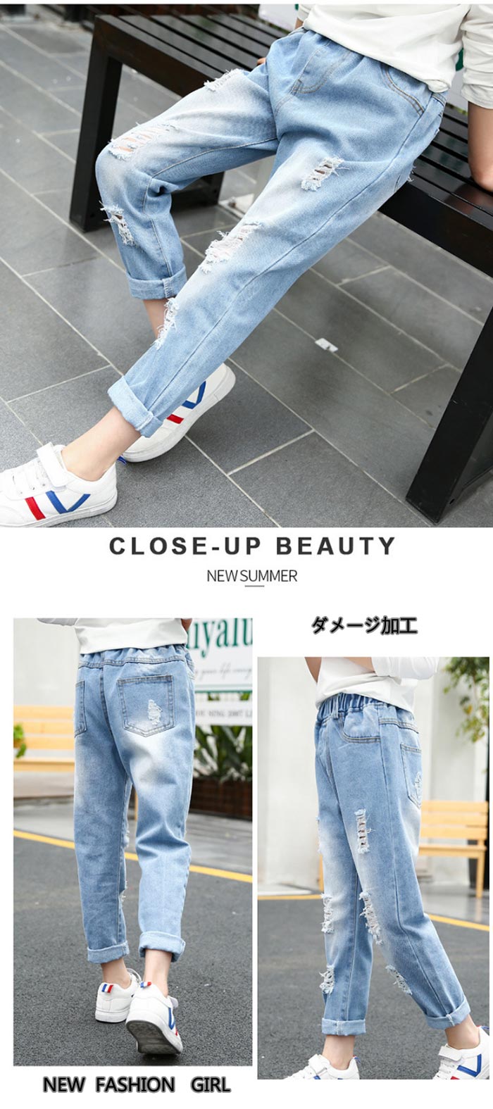 デニム パンツ ダメージ ジーンズ 女 キッズ ボトムス パンツ 早い者勝ち 110(日本100cm-105cm相当) 120(日本110cm-115cm相当) 130(日本120cm-125cm相当) 140(日本130cm-135cm相当) 150(日本140cm-145cm相当) 160(日本150cm-155cm相当) 170(日本160cm-165cm相当)