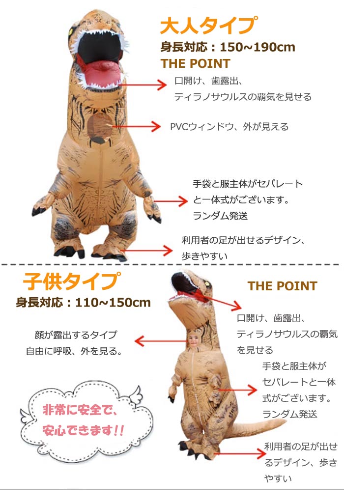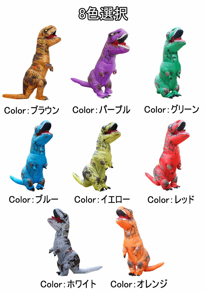 恐竜 8color エアコスプレ コス ホビー 新登場! ブラウン パープル グリーン ブルー イエロー レッド ホワイト オレンジ 子供用サイズ(身長110~150cm) 大人用サイズ(身長150~190cm)