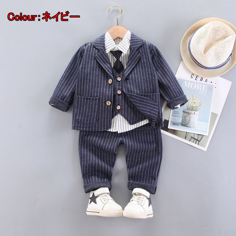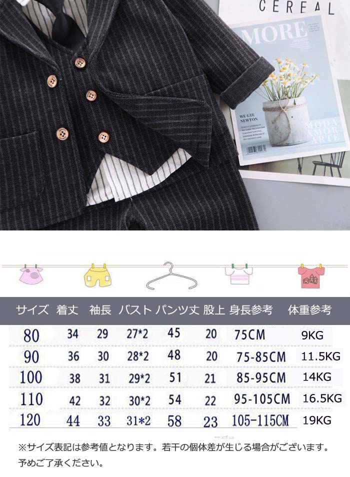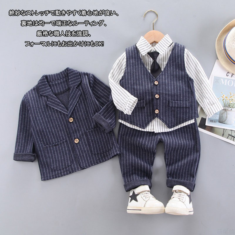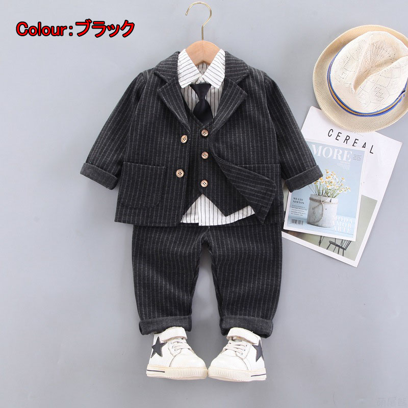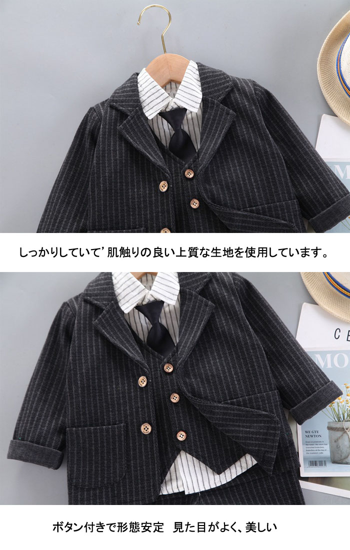 4点セット 子供スーツ 子供服 フォー キッズ ベビー マタニティ 続々入荷中 ブラック ネイビー グレー S/80(身長約75cm) M/90(身長約75~85cm) L/100(身長約85~95cm) XL/110(身長約95~105cm) 2XL/120(身長約105~115cm)