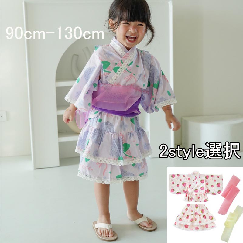 4点セット ワンピースになる2WAY いちご アジサイ 90(身長80~90CM対応) 100(身長90~100CM対応) 110(身長100~110CM対応) 120(身長105~115CM対応) 130(身長115~125CM対応)