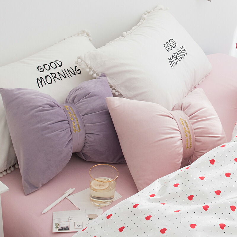 リボンクッション韓国雑貨インテリアおし ピンク ホワイト グレー グリーン ブルー パープル