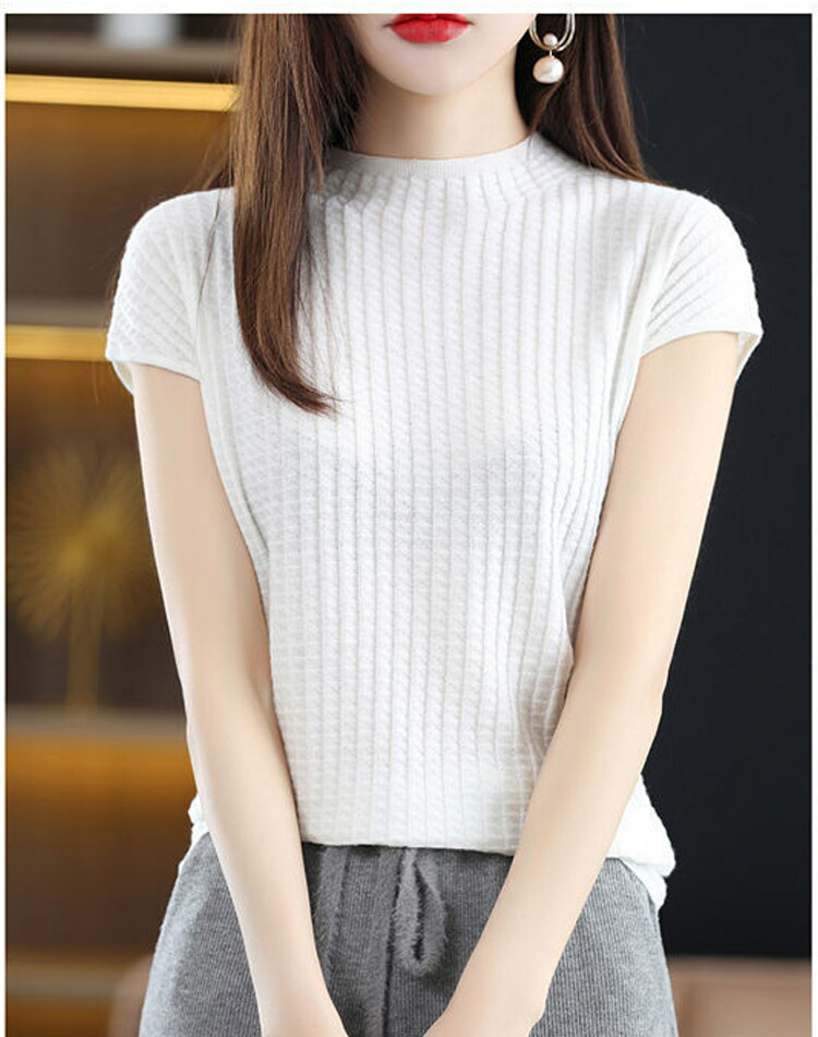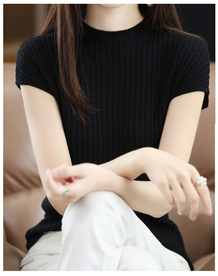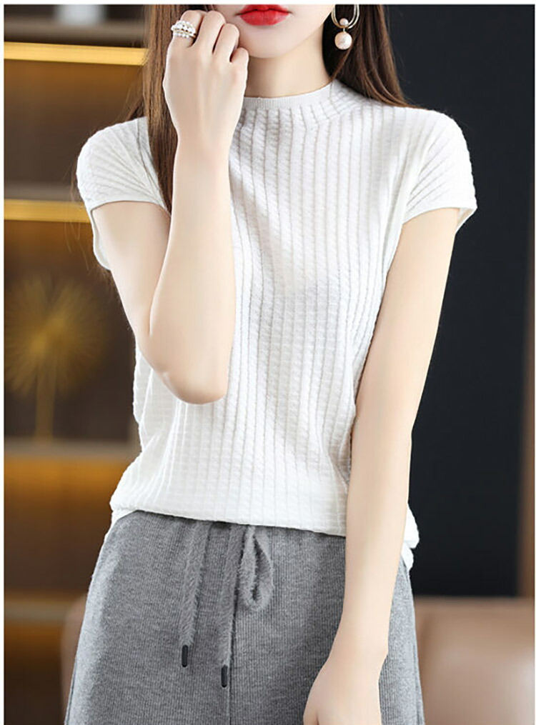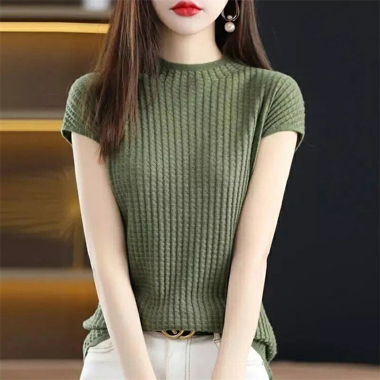 トップス レディース ニット サマーニット 半袖 クルーネック フレンチスリーブ リブニット セーター クルーネックニット プルオーバー 薄手 細見え オフィスカジュアル セクシー 大人 ストレッチ