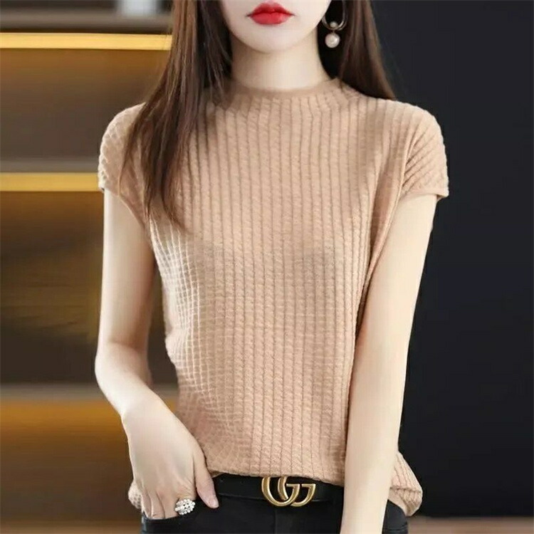 この春夏シーズンにぴったりのインナートップスは、シンプルでありながらも洗練されたデザインが魅力です。上品なリブ編みのディテールが特徴的で、どんなアウターにもスムーズに合わせやすい一枚です。