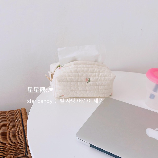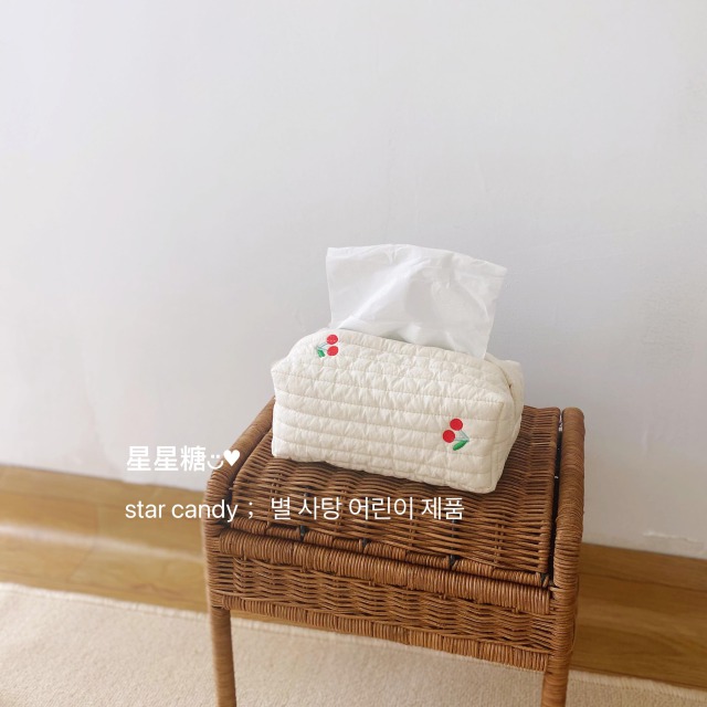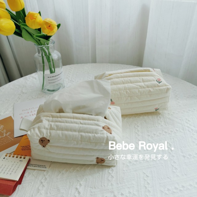 コットンティッシュケース4色箱ケースボ さくらんぼ チューリップ オリーブ くま