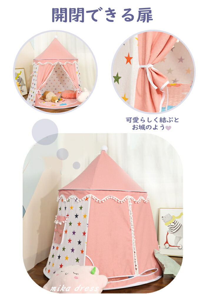 キッズテント プレゼント 折りたたみ おもちゃ ゲーム 通販 ピンク パープル ホワイト ブルー グレー 星柄ピンク 星柄イエロー 星柄ネイビー 星柄グレー 星柄ネイビー2