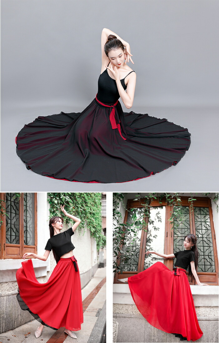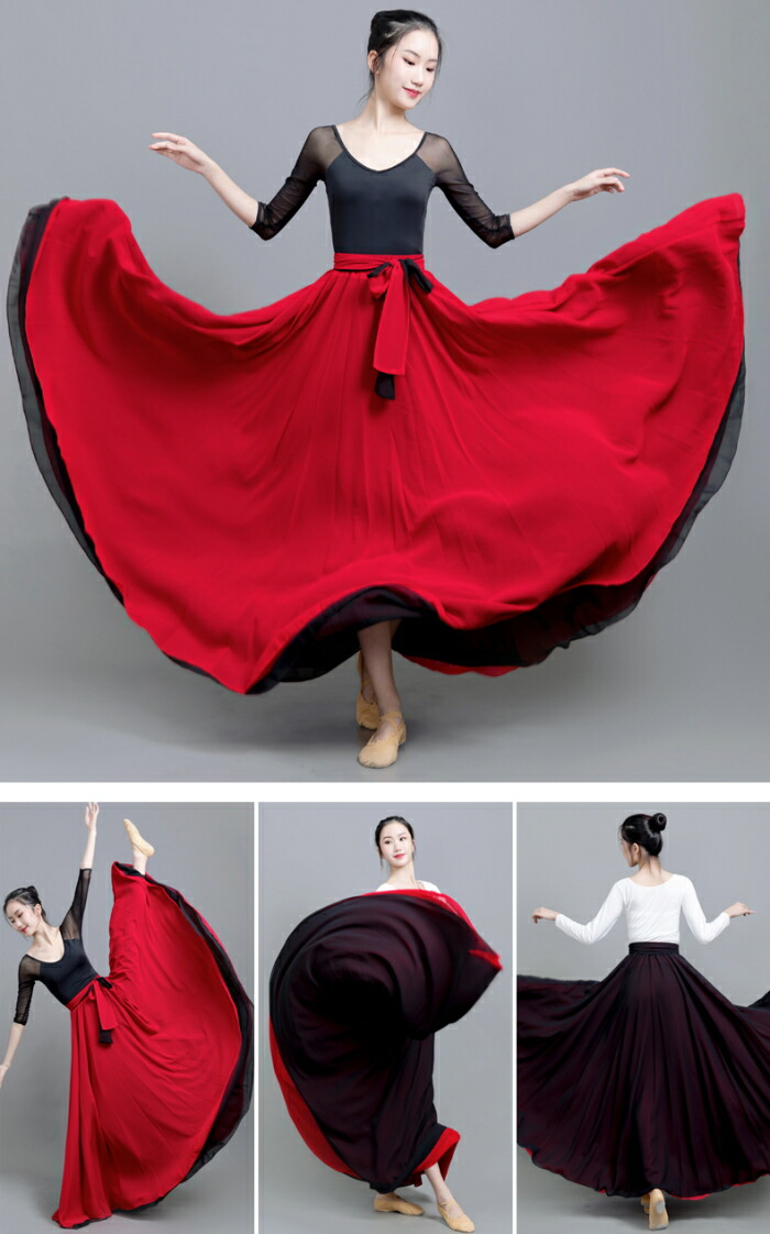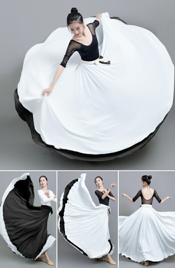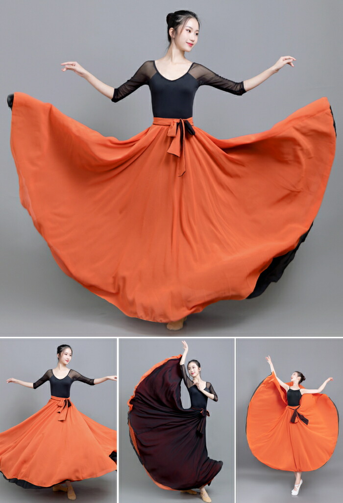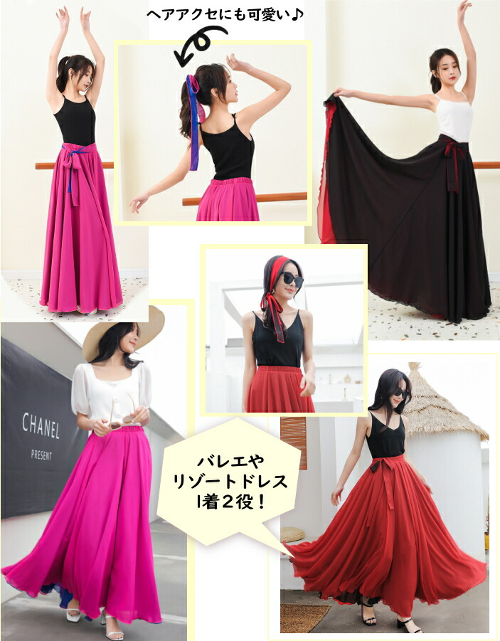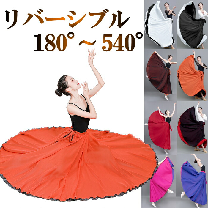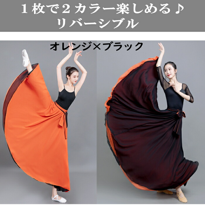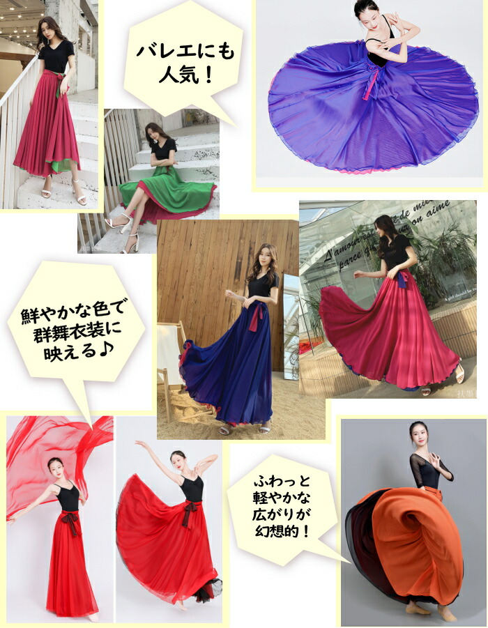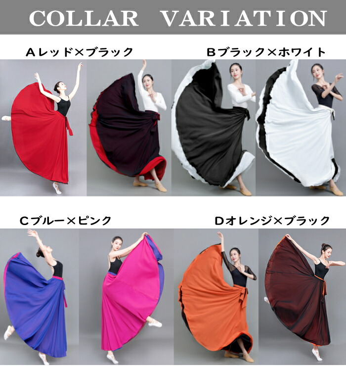 スカート ダンス衣装 ロングスカート レディースファッション 特集 180度 540度 Aレッド×ブラック Bブラック×ホワイト Cブルー×ピンク Dオレンジ×ブラック 他カラー完売