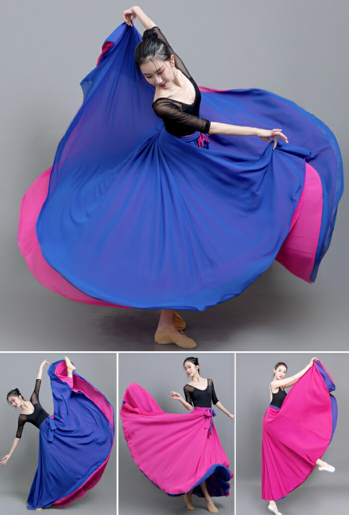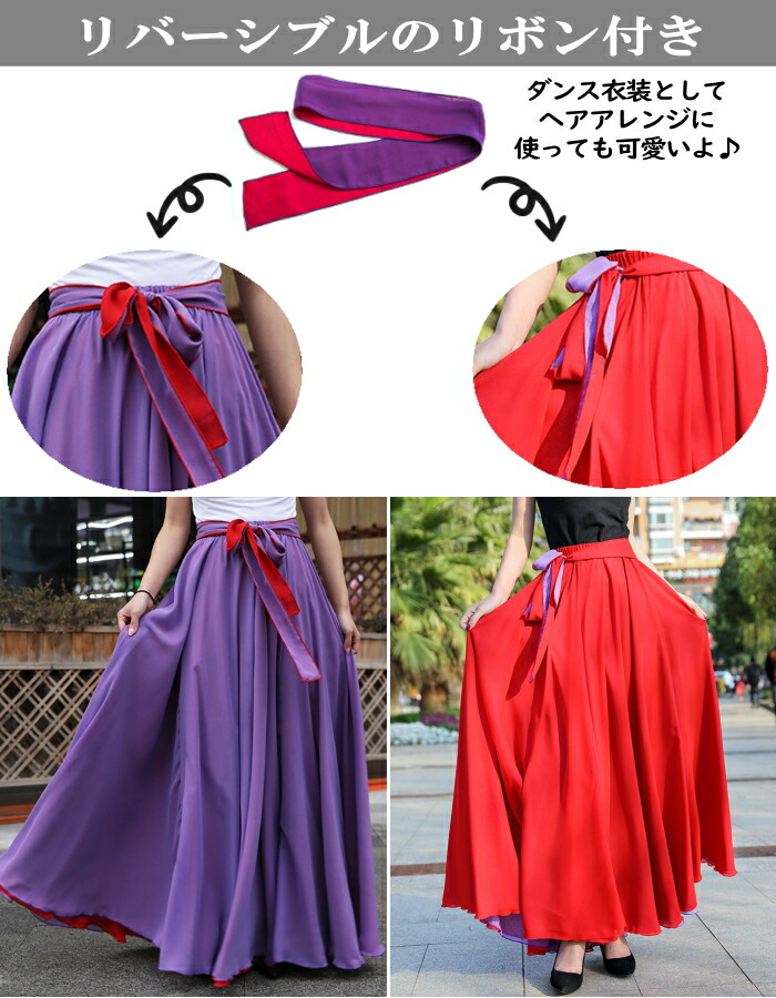 スカート ダンス衣装 ロングスカート リバーシブル 720度 全円 シフォン マキシ丈 社交ダンス ベリーダンス 衣装 ヒップホップ コーラス エレクトーン 広がる サーキュラースカート ミカド 大人