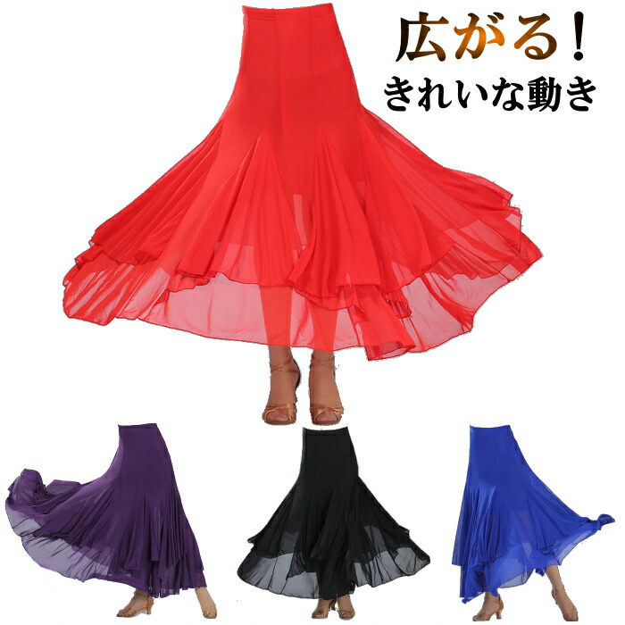 ダンス フレア スカート 社交ダンス 体操 ダンス 社交ダンス ウェア 通販 ブラック レッド ブルー パープル