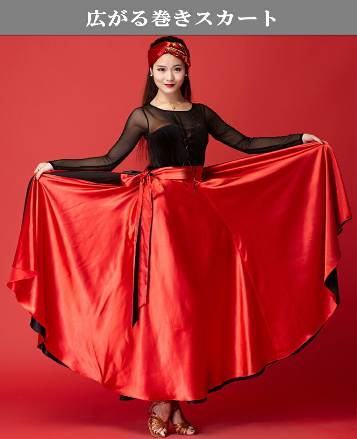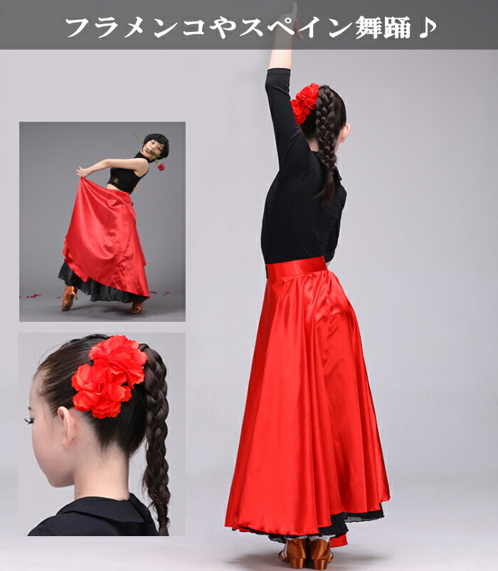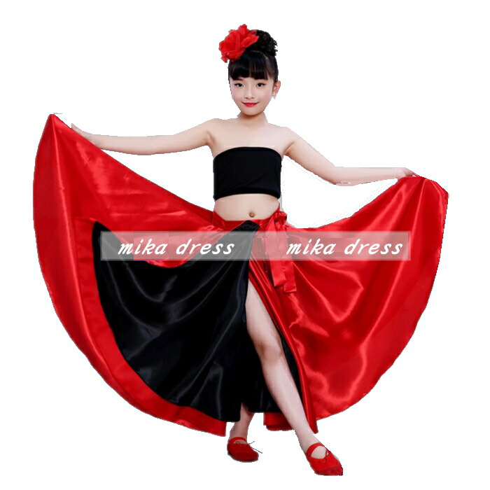 ダンス衣装 ガールズ ロングスカート 巻きスカート フレア レイヤード 社交ダンス ラテンダンス 舞台衣装 コーラス フラメンコ 衣装 スカート フラメンコ衣装 広がる 重ね着 キッズ ジュ リメイク
