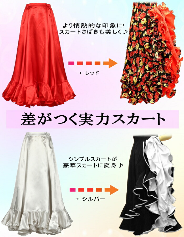 ダンス衣装 スカート ロングスカート サテンスカート フレアスカート ドレス ペチコート パニエ フラメンコ衣装 ベリーダンス ラテンダンス ヒップホップ マキシ丈 ロング 社交ダンス
