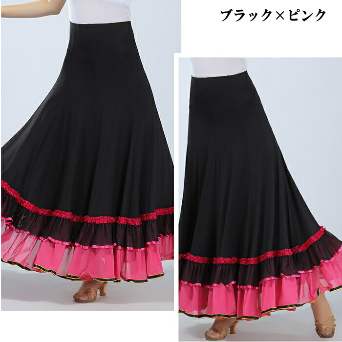 社交ダンス衣装 ダンス スカート ベリ ボトムス スカート 特集 ブラック×ブラック ブラック×レッド ブラック×ブルー ブラック×パープル ブラック×ライトブルー ブラック×ピンク