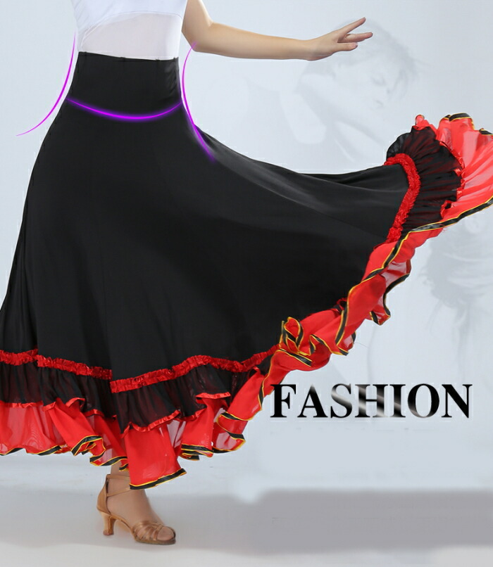 社交ダンス衣装 ダンス スカート ベリーダンス フラメンコ 衣装 社交ダンス サーキュラースカート ダンス衣装 ロングスカート フレアスカート ロング ファルダ ヒップホップ シフォンフ ラテンダンス