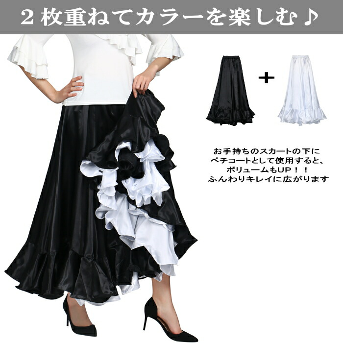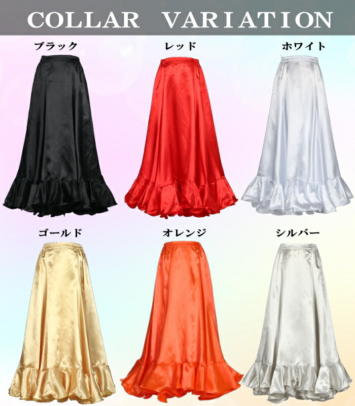 ダンス衣装 スカート ロングスカート レディースファッション 通販 大人フリーサイズ/着丈88cm 子供(推奨130-150)/着丈70cm ブラック ホワイト レッド ゴールド シルバー パープル ブルー ライトブルー イエロー オレンジ モスグリーン ピンク