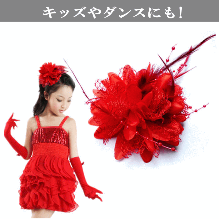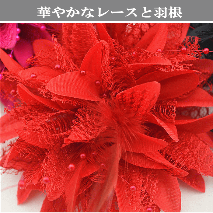 コサージュ 羽根 フェザー レース ヘッドドレス ヘアアクセサリー 髪飾り ヘアクリップ ゴム フラワーチュール パーティードレス ダンス衣装にぴったり 花 ダリア 牡丹 フラ カメリア
