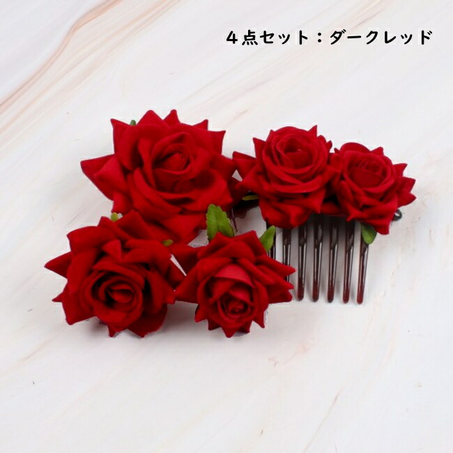 バレッタ ヘアコーム 大きめ コサージ レディースジュエリー アクセサリー ヘアアクセサリー バレッタ 早い者勝ち 4点セット ヘアコーム単品 バレッタ単品 ダークレッド ブラック ホワイト ネイビー レッド