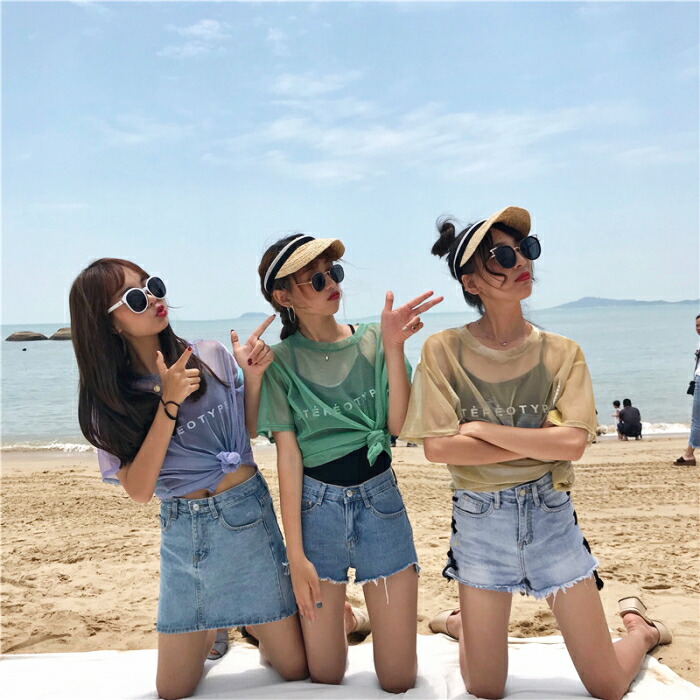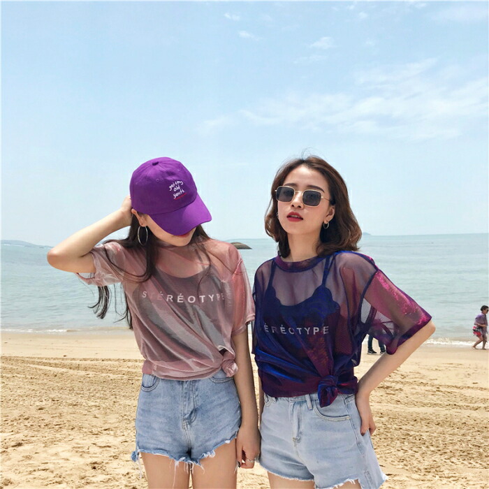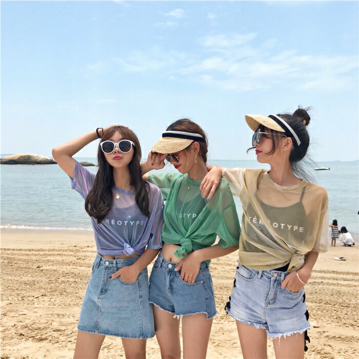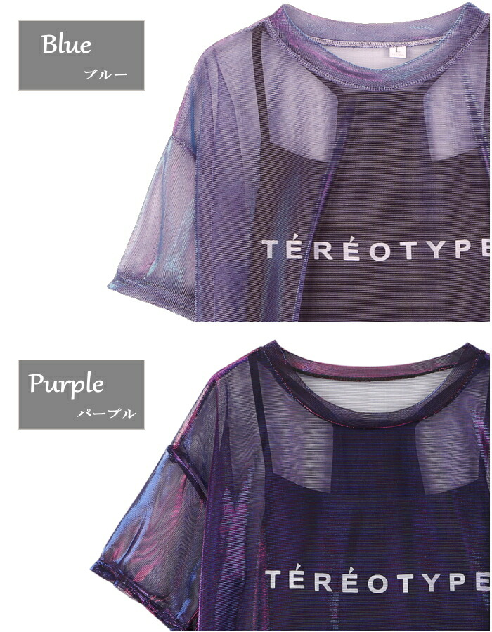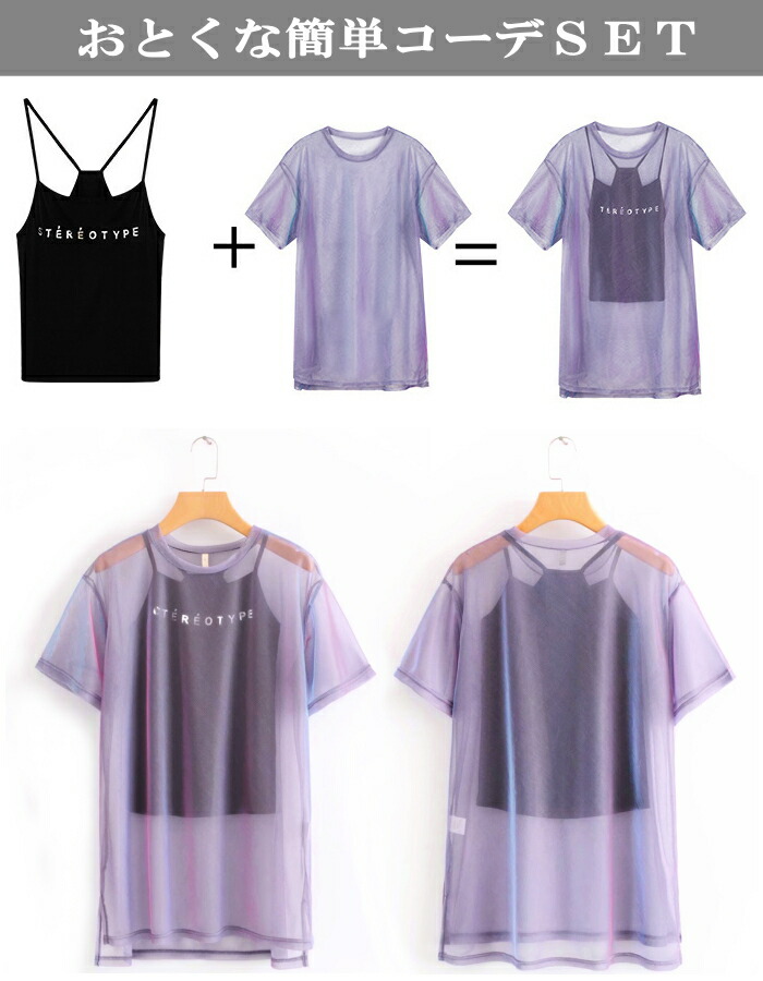 シアー Tシャツ ダンス衣装 トップス キャミソール アンサンブル セット 半袖 セットアップ シースルー 重ね着 透け 肌透け 光沢 ヒップホップ ストリート 偏光 ベリーダンス レッ ネオンカラー